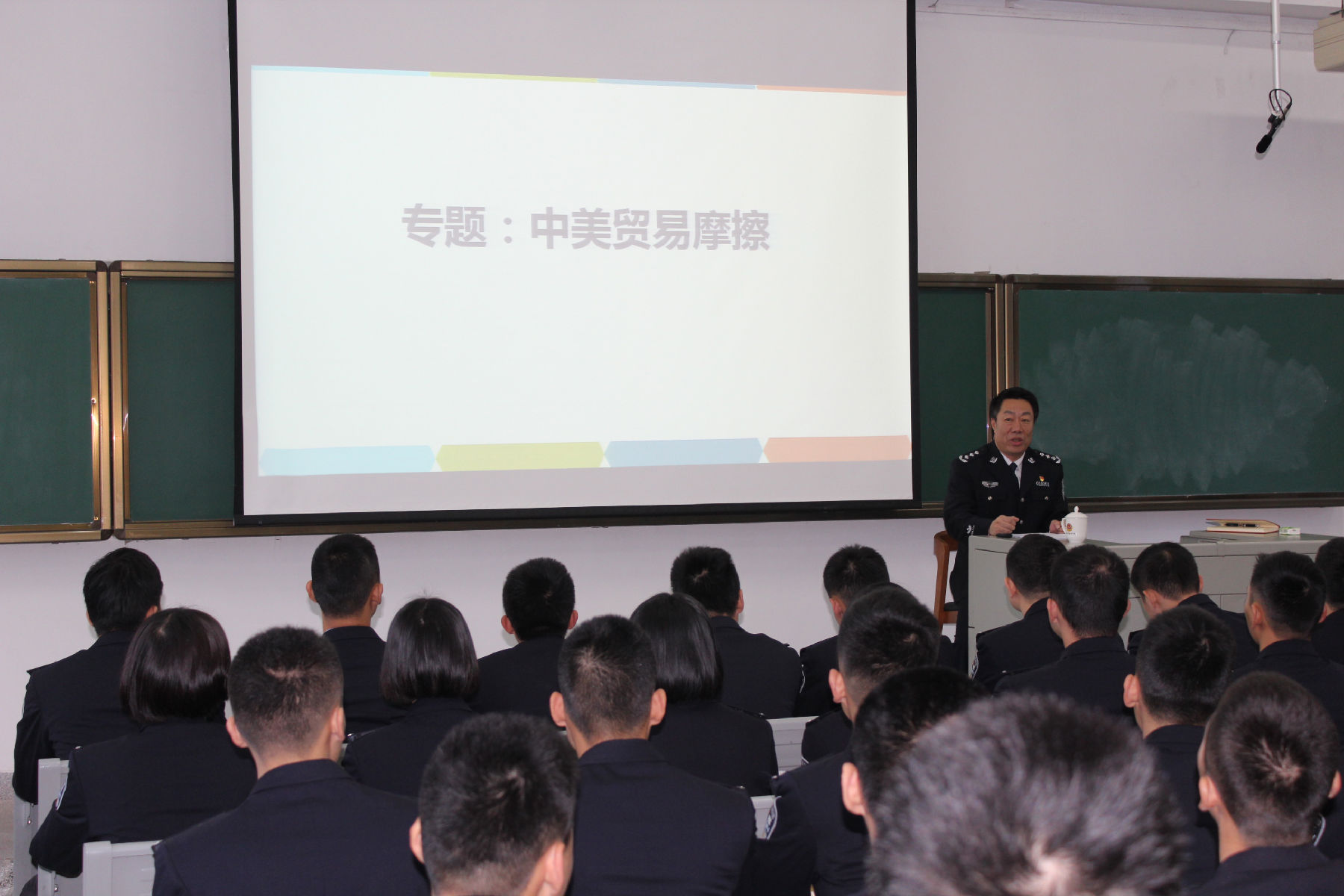 12月12日下午,beat365党委书记游晔为学院习近平新时代中国特色社会主义思想读书社200余名成员开设“中美贸易摩擦”专题讲座。