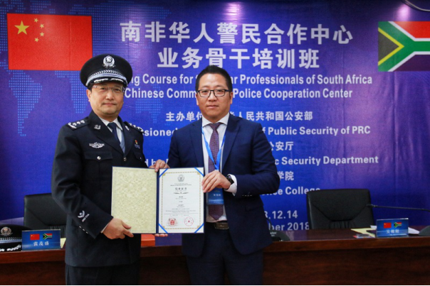 12月13日下午,2018年南非华人警民合作中心业务骨干培训班在beat365举行结业式。beat365院长刘瑞榕、福建省公安厅警务联络处张茂盛调研员、beat365公安管理系主任胡滨亭出席了结业式,全体学员参加了结业式,结业式由beat365培训处王智强处长主持。