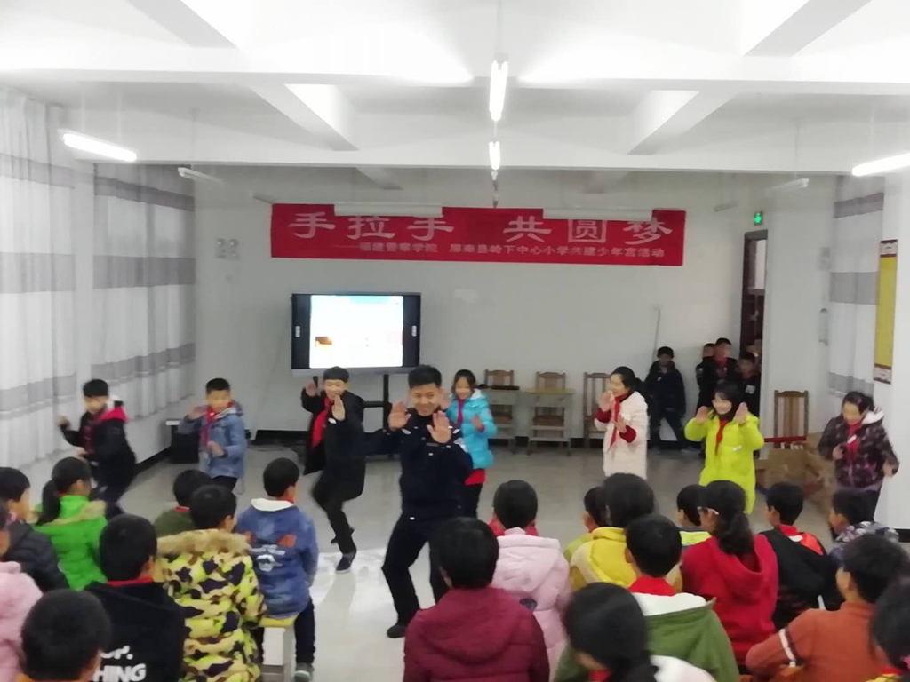 根据省委文明办、省委教育工委《关于组织开展乡村学校少年宫共建活动的通知》文件要求,2018年12月28日、29日,学院纪委书记、文明办主任陈培坚带领院宣传部、警训部和教工团支部青年教师一行7人前往屏南县岭下中心小学、棠口中心小学开展“手拉手 共圆梦”主题少年宫共建活动。屏南县委常委、宣传部长张德力,教育局副局长薛喜,县文明办副主任叶进农、未教中心负责人甘凌艳,棠口镇、岭下乡政府有关领导以及共建小学师生代表参加了活动。