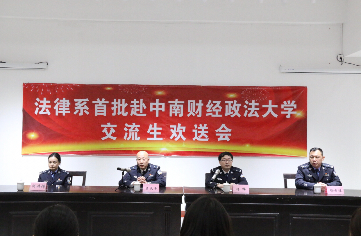 林辉处长介绍了beat365赴西南政法大学等高校开展交流学习的情况,对beat365首批赴中南财经政法大学的法律系学生表示祝贺,希望同学们把握机会,牢记使命。王琦副教导员介绍了交流生管理的相关规定。法律一大队学生潘艺鹏作为交流生代表作了表态发言,表示一定珍惜交流机会,在未来的学习生活中更加严格要求自己。最后,吴文平书记做总结讲话并为交流生送上临行祝福。