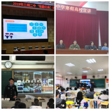 在活动中,70多支学生小分队,带着学院精心制作的贺年卡,回到原籍80多所高中母校,向师生详细介绍警院的办学特色,尤其是招生及国家资助政策,并结合自身实际,与学弟学妹们分享了大学学习方法与高考志愿填报经验,激励他们奋发图强,决胜高考。此次活动加强了学院与各地高中的交流,拓展了学院招生宣传的途径,提高了学院的办学影响力。