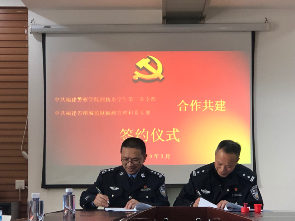 为贯彻落实习近平新时代中国特色社会主义思想和党的十九大精神,创新基层党建工作载体,提高基层党建工作水平,3月25日下午,刑罚执行系学生第二党支部与榕城监狱狱政管理科党支部举行合作共建签约仪式,刑执系党总支书记林文清、榕城监狱副监狱长邱新建等参加了仪式。