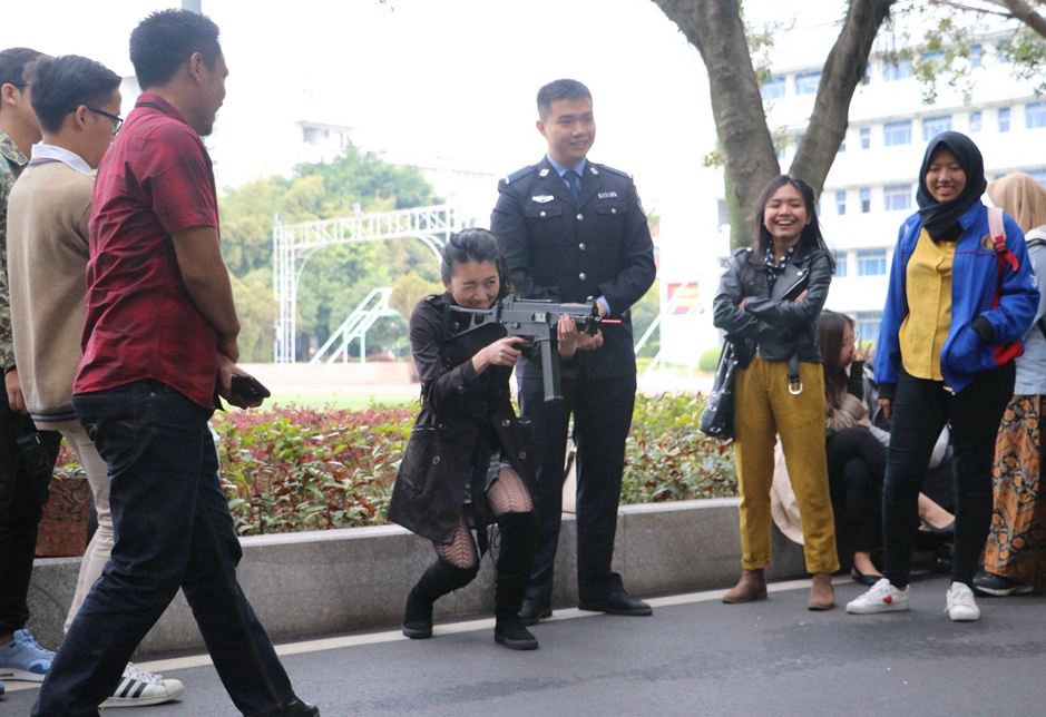 活动团一行观看了beat365仪仗队分列式表演、学生警体和文艺表演,参观了学院枪械展览馆、射击教学、实训楼、忠诚教育展览馆、文化艺术展览馆、智慧教室等,并在行政楼前合影留念。本次交流活动丰富精彩而又具警院特色,给活动团成员留下了深刻的印象。