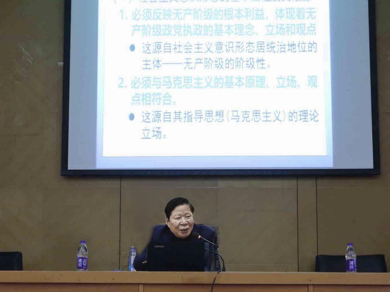 郑又贤教授紧密围绕讲座主题,从准确把握社会主义意识形态的基本属性、充分认识社会意识形态斗争的新特点,以及推进社会主义意识形态的维护、创新和发展等方面,系统、深入阐述了新时代加强社会主义意识形态建设的基本思路。讲座站位高远、观点鲜明、内容丰富、生动通俗,使师生们深刻领会了在新时代加强社会主义意识形态工作的重要性和必要性。