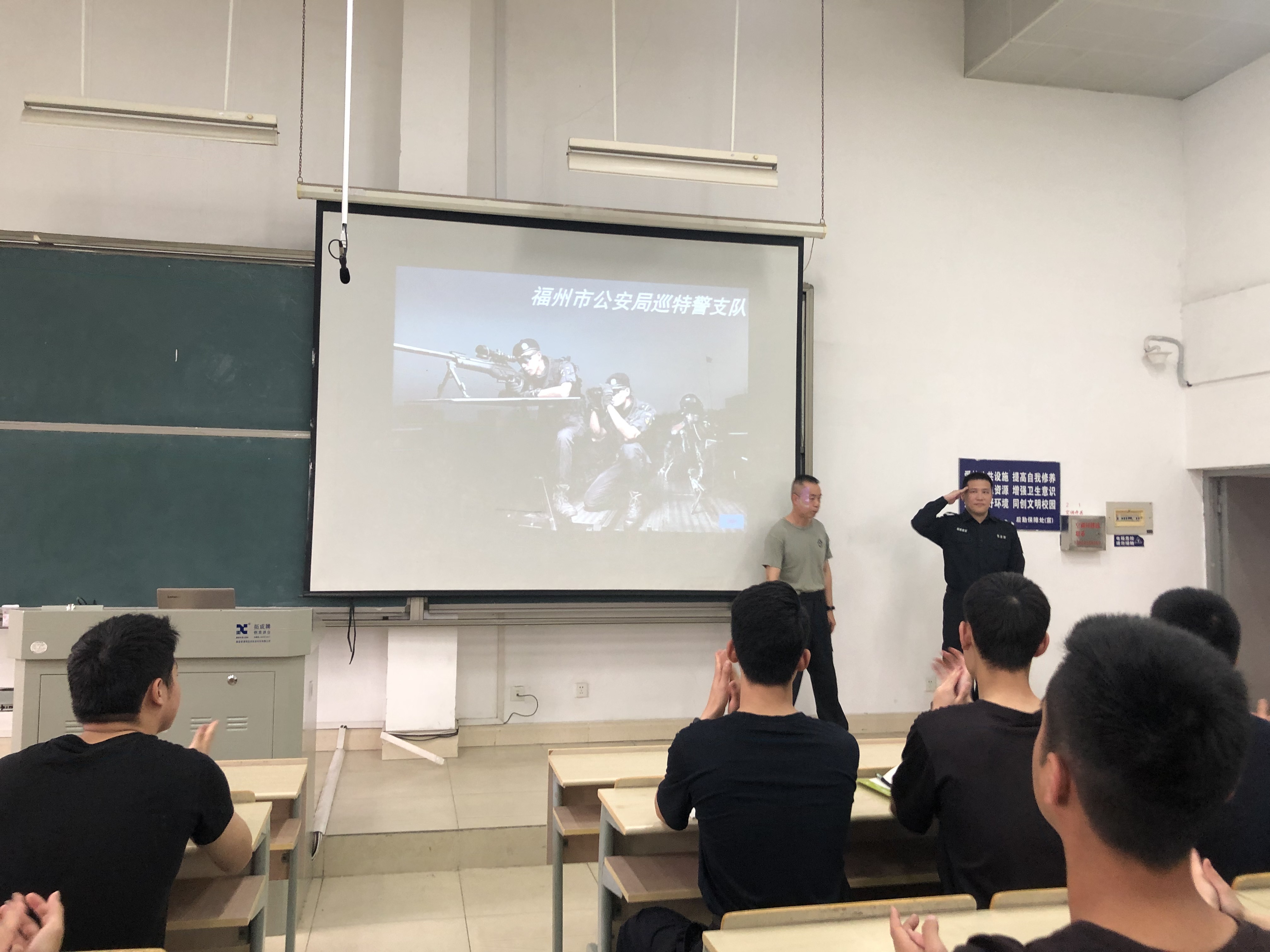 两位教官分别以《反恐形势》《劫持人质的对策》为主题,结合实际案例进行了详细讲解,使师生深入了解了基层警务实战的特点以及执法中的新形式、新方法。本次系列讲座内容丰富、实践性强,现场气氛活跃、互动热烈,受到了同学们的欢迎。