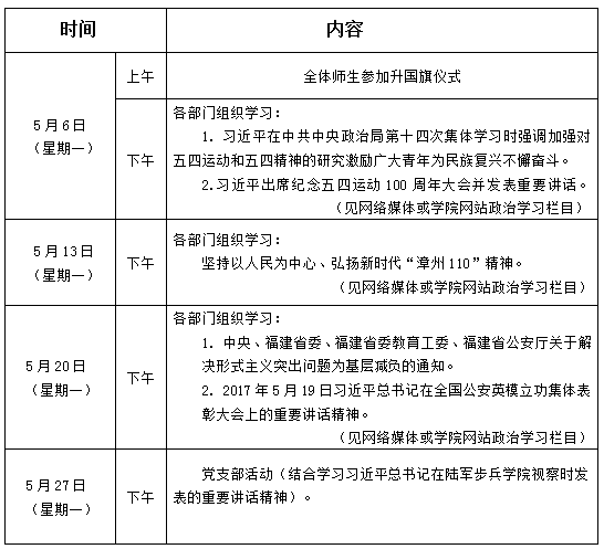2019年5月份学院政治理论学习活动安排表