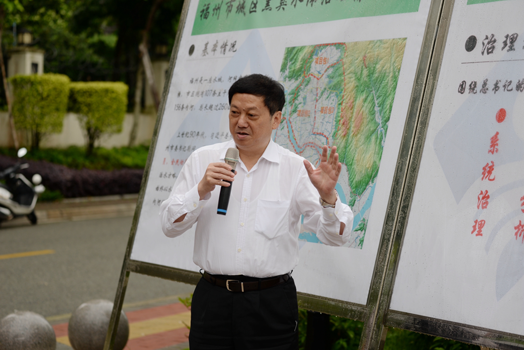 在流花溪公园,尤猛军市长结合宣传展板内容,详细介绍了福州市委、市政府开展城区黑臭水体治理情况和流花溪水体治理成效,分享了福州创新水系治理的“七大理念”和“9+5治理策略”。随后,大家参观了上下杭三捷河、晋安生态公园,边走边看边沟通,实地了解福州历史文化保护和传承、公共休闲空间建设工作情况。