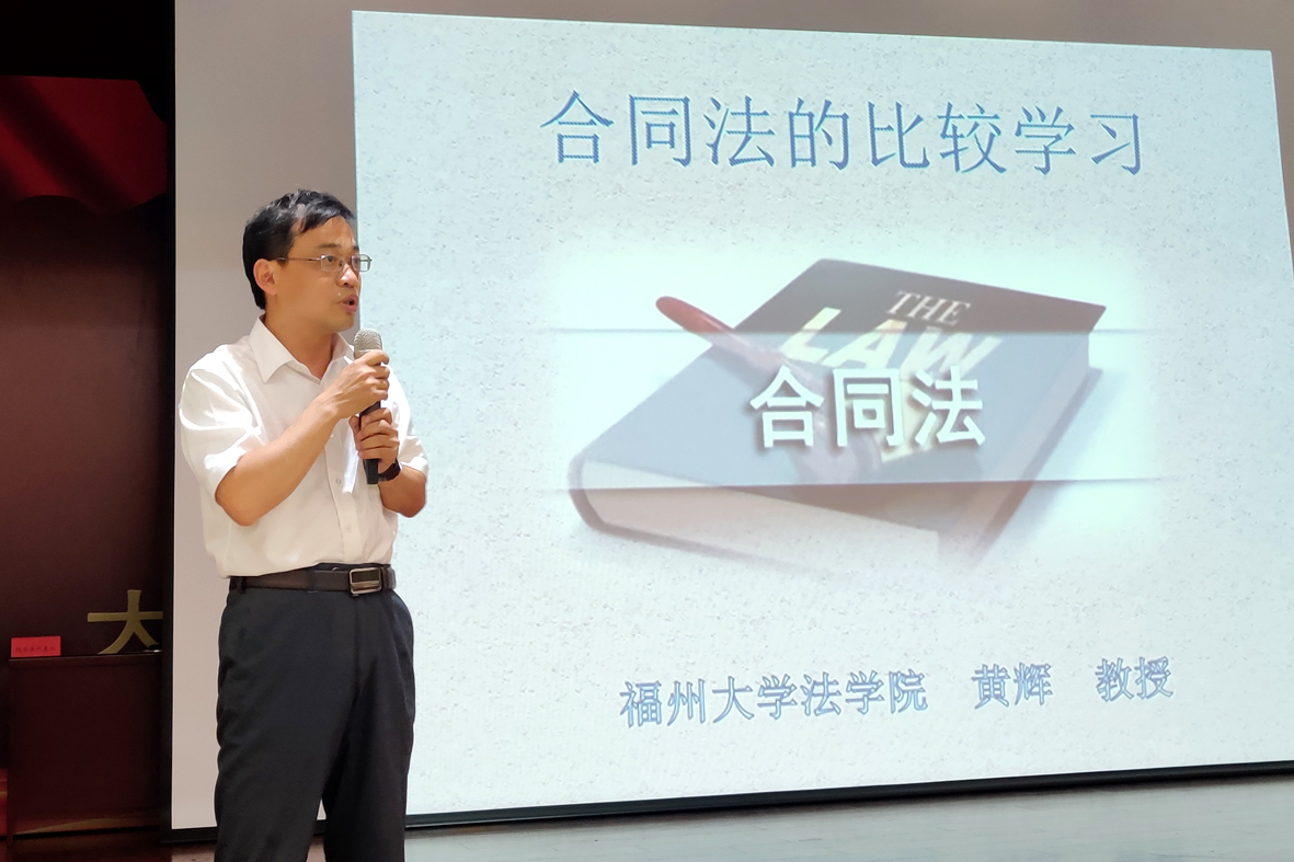 5月27日下午,福州大学法学院院长黄辉教授应邀为beat365师生开设《合同法的比较学习》讲座。刑技系全体教师,刑事科学技术、经济犯罪侦查、侦查学等专业学生听取了讲座。讲座由刑技系主任林艳平主持。