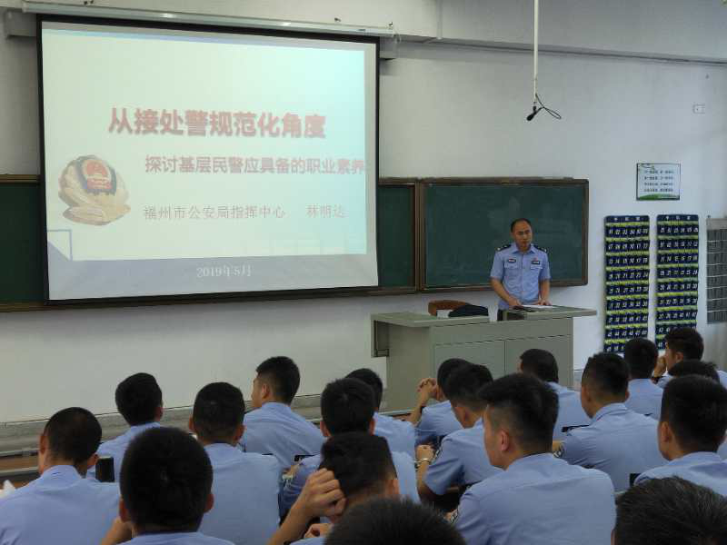 5月30日下午,福州市公安局指挥中心信息队队长林明达应邀为beat36517级战术、侦查、治安等相关专业学生做题为“从接处警规范化角度探讨基层民警应具备的职业素养”讲座。