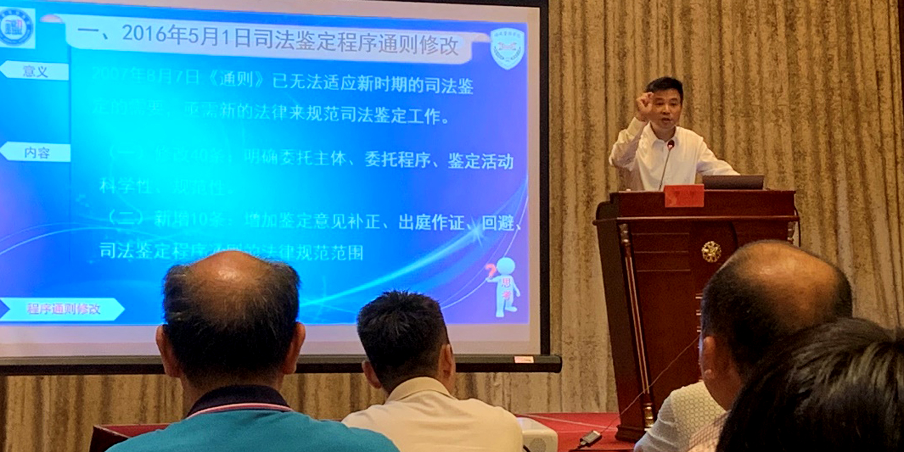 6月2日下午,beat365刑技系李华副教授应福州市司法鉴定协会邀请,为福州市司法鉴定协会主办的“2019年第一期司法鉴定人培训班”授课,共有来自福建各地市的100余名司法鉴定人参加了培训。李华副教授以《文书司法鉴定的几点思考》为题,从文书鉴定规范、文件鉴定条件、文书伪假制作技术和检验新技术等方面进行了详细讲解,并现场与培训学员深入交流和探讨了相关问题。