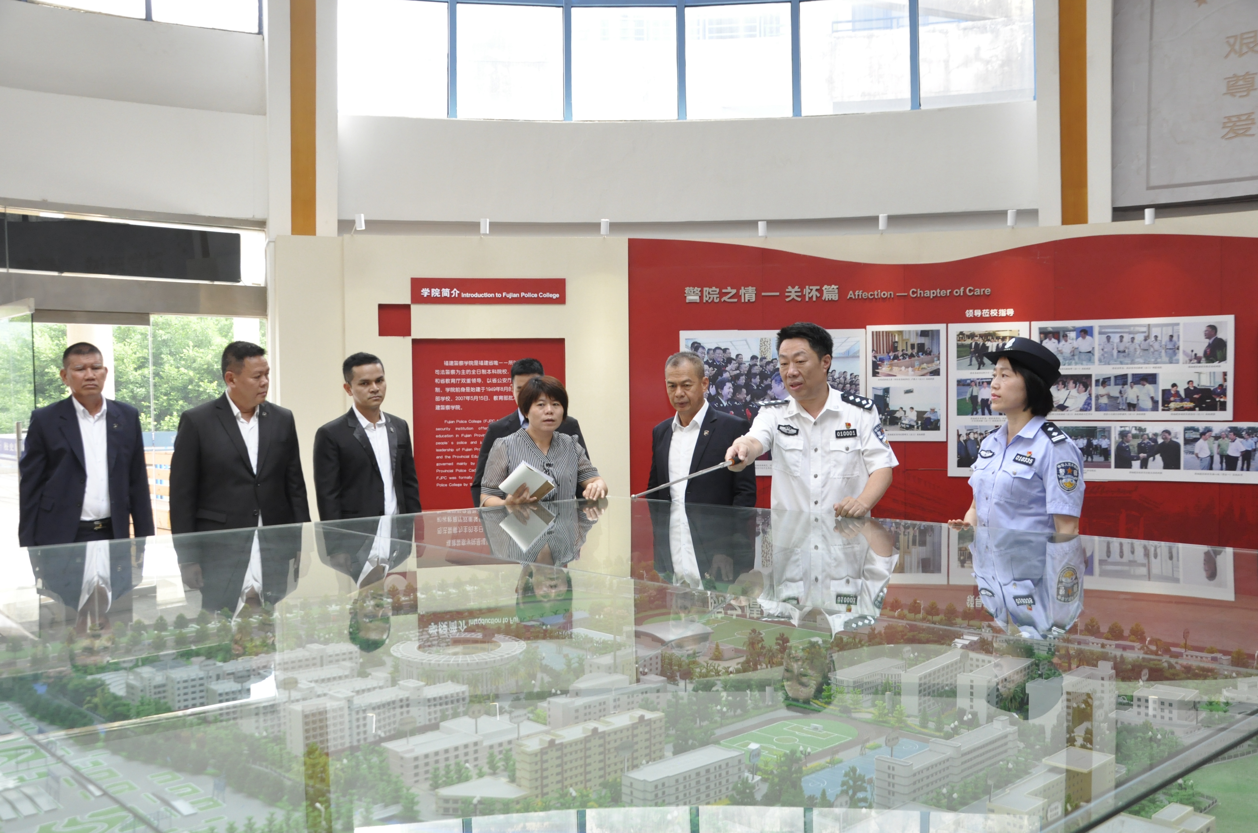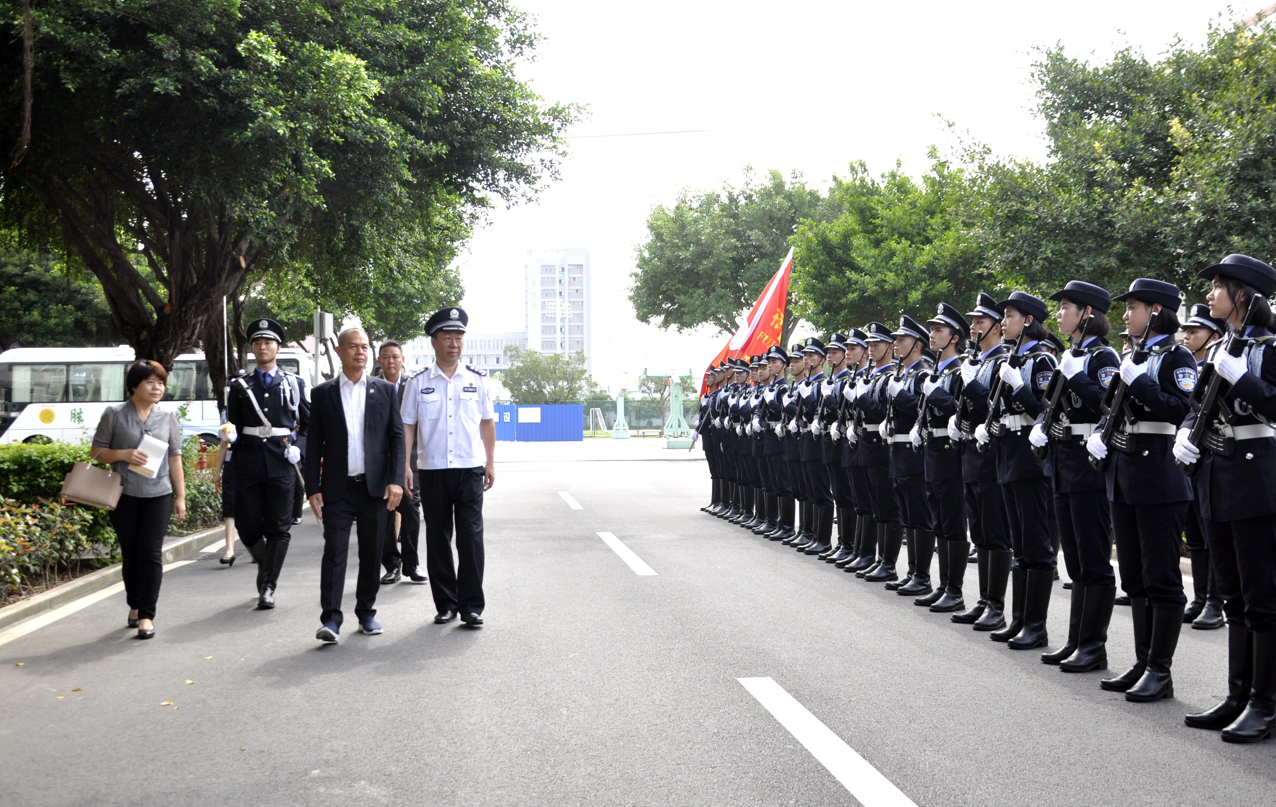 在学院党委书记游晔的陪同下,代表团检阅了学生仪仗队,观看了仪仗队分列式,参观了校史馆、枪械展览馆、忠诚教育展览馆和实训楼。随后,双方就警察体制、学生就业、专业设置等事项进行了座谈,并互赠了礼品。