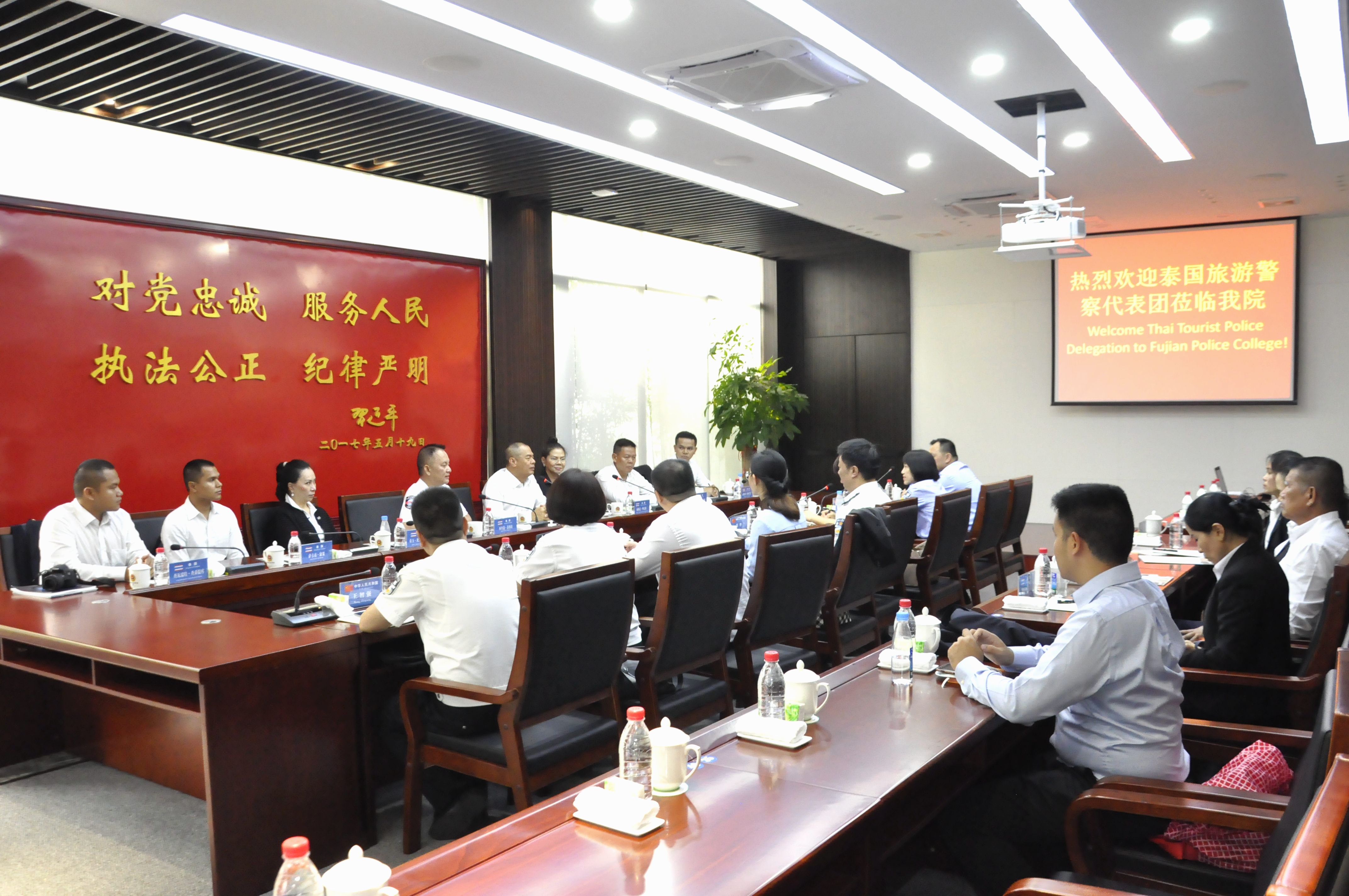 6月18日下午,泰国旅游警察局总局长提拉彭·坤达侬中将一行15人到beat365交流访问。
