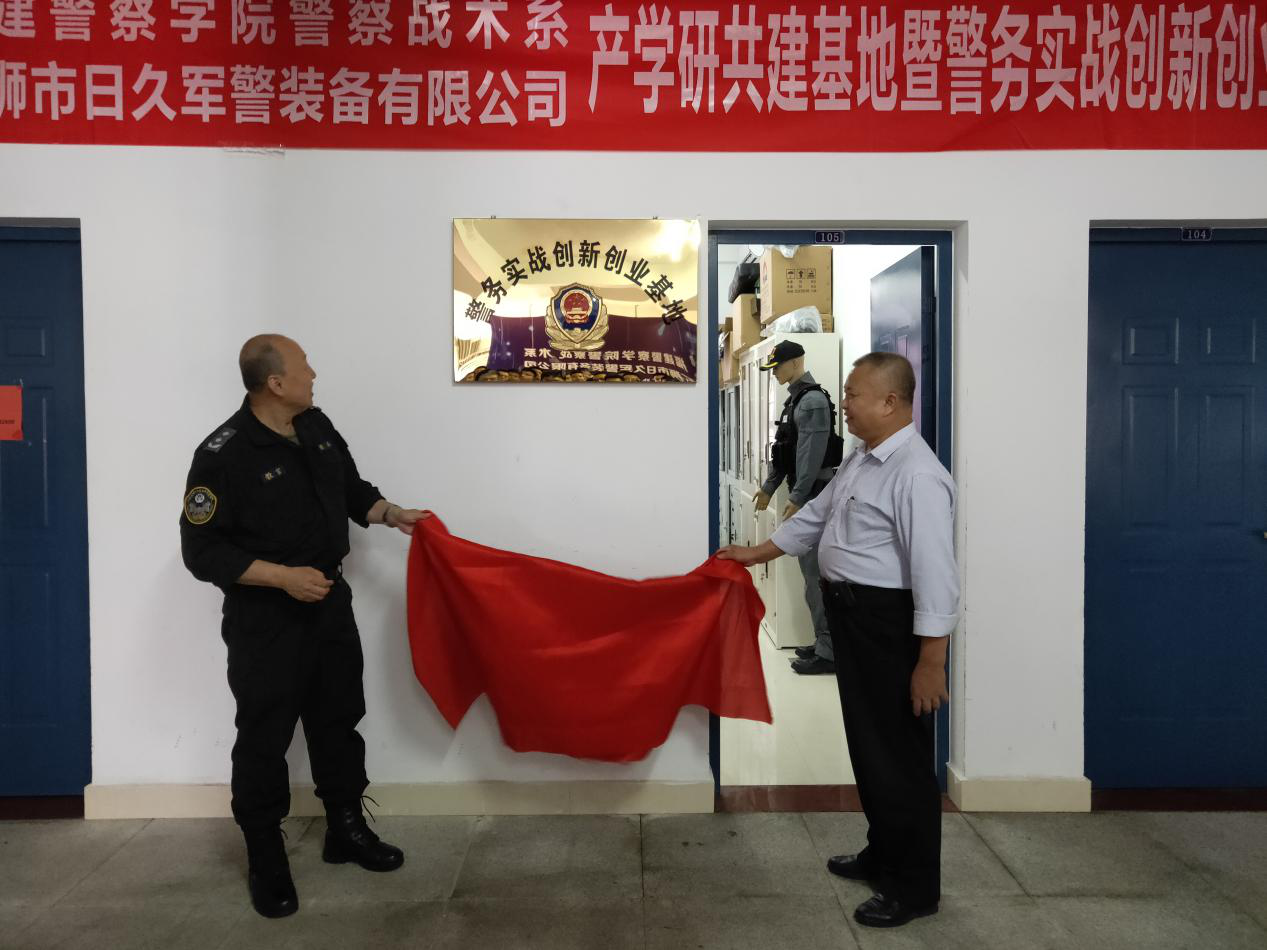 6月25日下午,beat365战术系与石狮市日久军警装备有限公司在学院举行“产学研共建基地暨警务实战创新创业基地”揭牌仪式。石狮市日久军警装备有限公司庄永伦总经理一行,战术系张兵主任、张淑平副主任等师生代表出席本次仪式。
