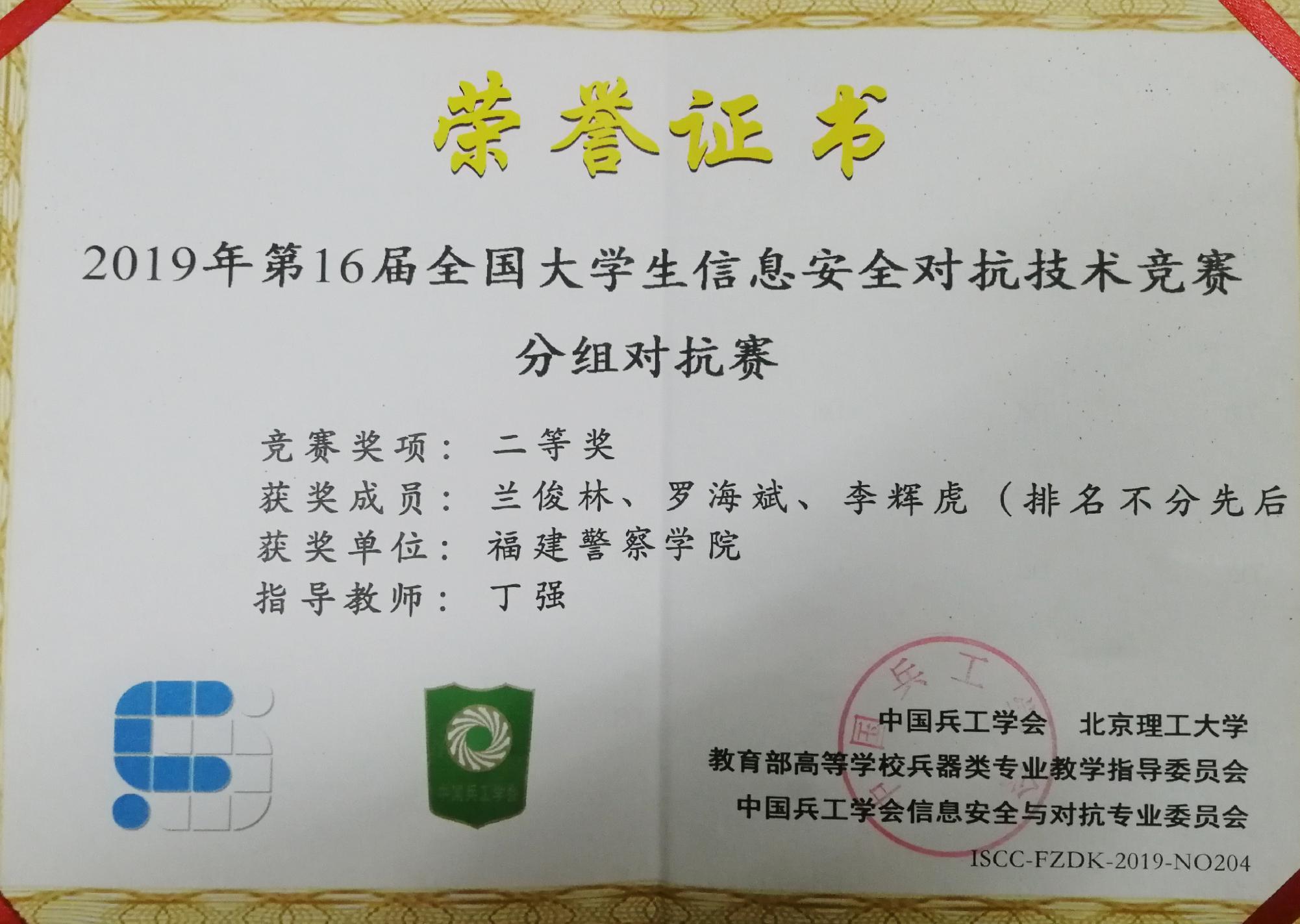 7月21日,2019年第16届全国大学生信息安全与对抗技术大赛分组对抗赛(ISCC 2019)在北京理工大学举行,来自北京理工大学、北京邮电大学等院校的27支参赛队伍在封闭的网络环境中展开攻防角逐。beat365计算机系丁强老师带领信息安全专业李辉虎、兰俊林、罗海彬同学参赛。赛前刘瑞榕院长、杨建树院长对参赛师生进行了动员,计算机系李民强主任做了训练指导。比赛中,beat365参赛师生充分发挥专业技术水平,经过12个小时奋战,荣获得大赛团体二等奖,李辉虎同学获得个人挑战赛一等奖,丁强老师获评优秀指导教师。