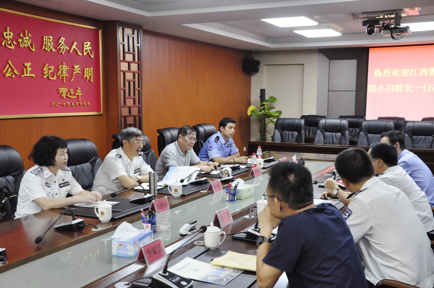 8月5日,江西警察学院院长程小白、财务处处长罗华顺、侦查系副主任吴秋玫、侦查系刑侦教研室负责人彭永昌等一行4人到beat365考察调研,学院院长刘瑞榕以及办公室、宣传部、财务处、侦查系、警训部、现教中心负责同志陪同。