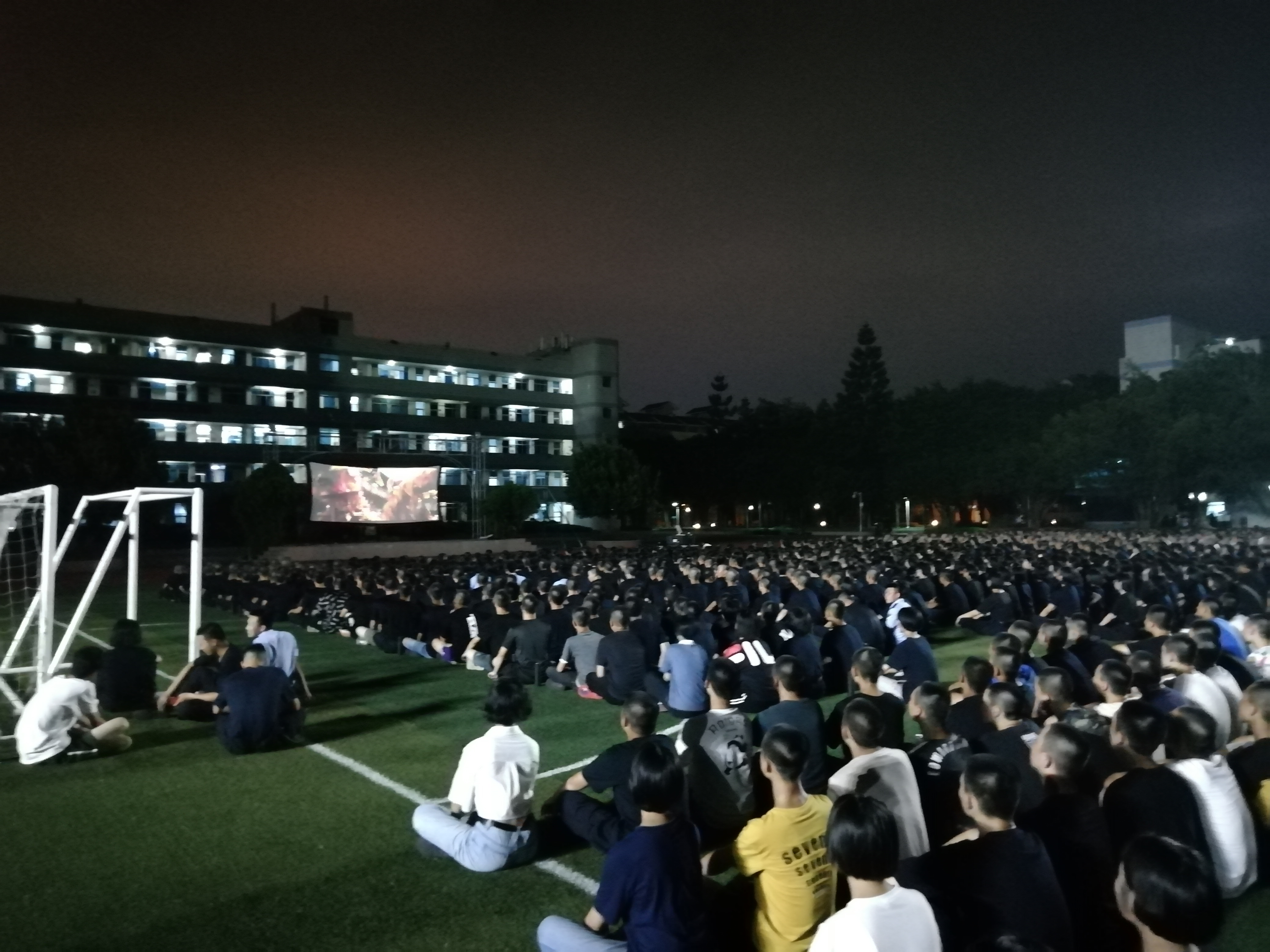 为庆祝建国、建校70周年,开展好“不忘初心牢记使命”主题教育,培养学生爱国情怀,丰富新生军训业余文化生活,9月8日晚,学工处组织2019级新生在小操场观看电影《古田军号》。
