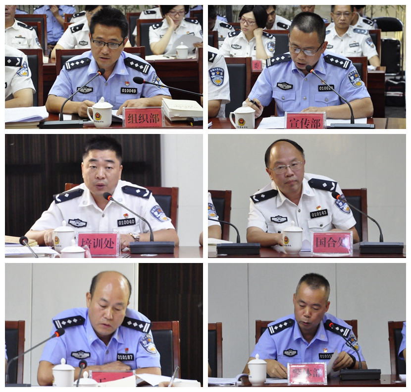 组织部部长林炜、宣传部部长黄伟、培训处处长王智强、国际合作处处长林佑达、工会副主席黄利生、警察体育教学训练部主任林阳东,围绕“主动担当作为”主题作交流发言。