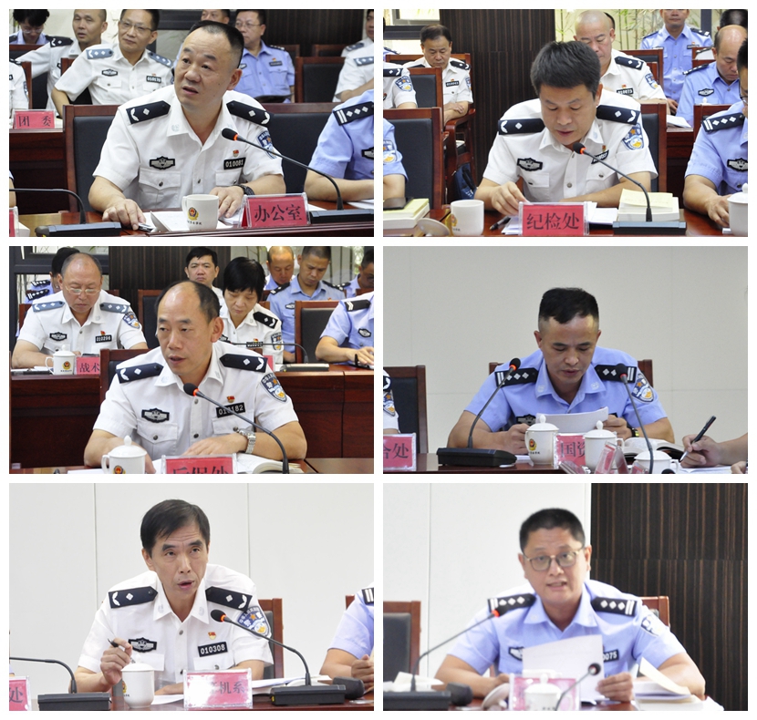办公室主任林强、纪检监察审计处处长蓝峰、国有资产管理处副处长范谋德、计算机与信息安全管理系主任李民强、荆溪校区工作组组长李松围绕“严明纪律规矩”主题作交流发言。