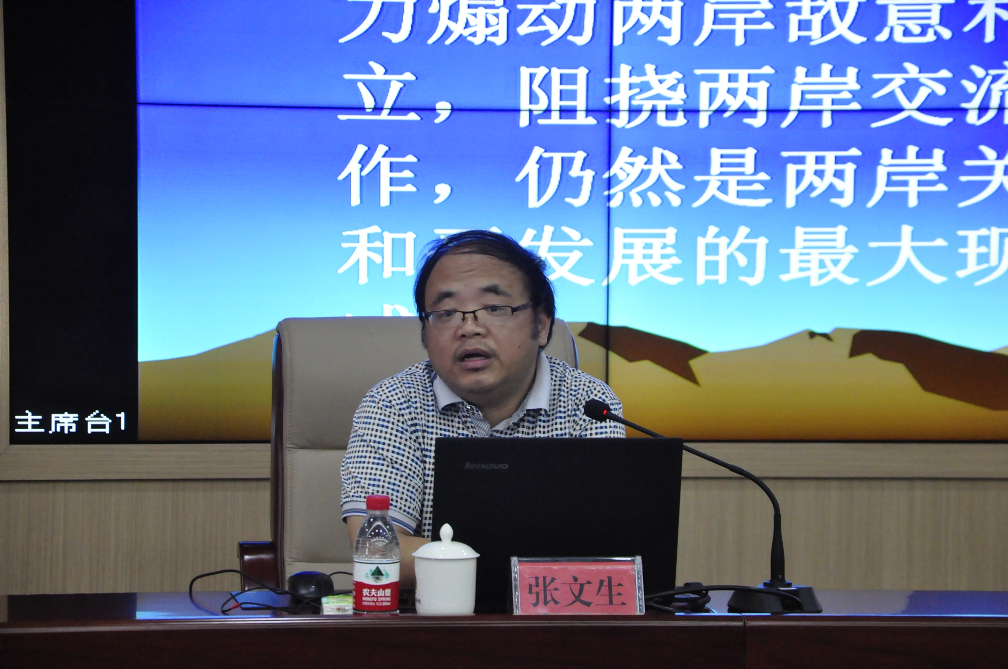 按照beat365“不忘初心、牢记使命”主题教育集中学习研讨的工作安排,9月27日下午,学院邀请厦门大学台湾研究院副院长张文生教授,在阶梯教室102作两岸关系专题讲座。院党委领导班子成员,处级党员领导干部及师生党员代表一起听取讲座。