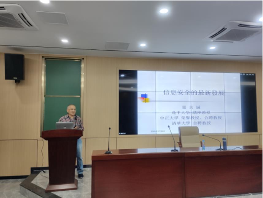 陈副主任首先向张教授表示诚挚的欢迎,并介绍了张教授在科研领域的成就。张教授深入浅出地分析了信息安全领域关于数据保密技术、电脑门神、秘密分享、授权度、资讯隐藏和数位浮水印六大最新发展。他还分享了自己获得台湾第一批博士学位的人生经历。