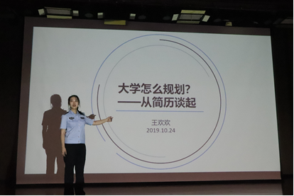 讲座中,王欢欢老师围绕“大学怎么规划?——从简历谈起”主题,着重从加强学习、丰富社会实践角度论述了如何合理规划自己的大学生涯。余晓青老师结合就业方向,从专业学习方法、相关证书考取等角度出发,提出了大学四年学习生涯规划的具体建议,指出努力方向。讲座中两位老师都强调规划的重要性,希望同学们既能仰望星空有理想、有追求,又能脚踏实地,明确目标、奋斗拼搏,让青春拥有无限的可能性。