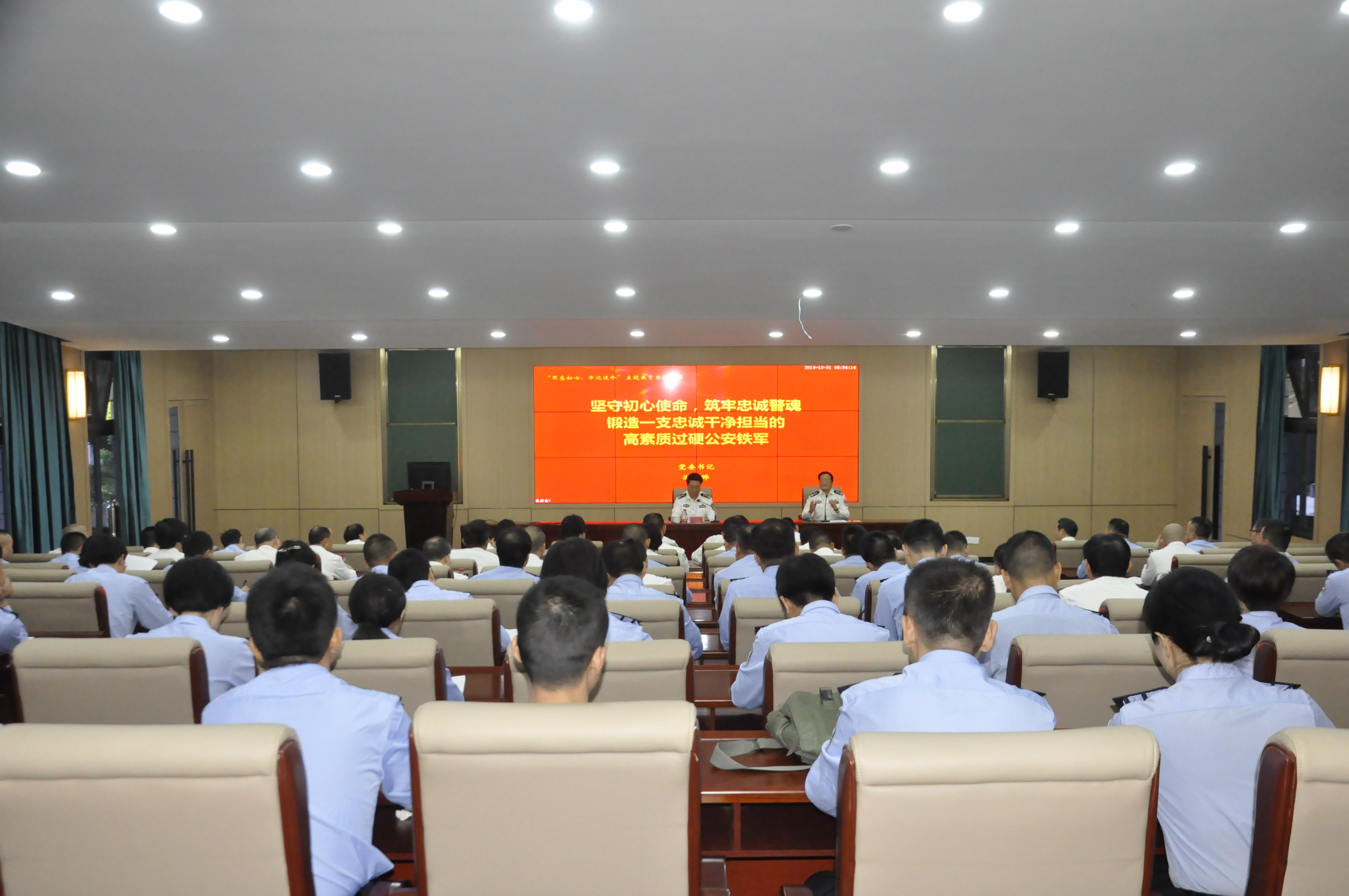 10月31日上午,学院党委书记游晔在阶梯教室102开设以“坚守初心使命,筑牢忠诚警魂,锻造一支忠诚干净担当的高素质过硬公安铁军”为题的专题党课。省委第11巡回指导组副组长尉纬及指导组成员张玲、别信三莅会指导,党委班子成员、院处级以上领导干部和全体党支部书记参加学习。会议由刘瑞榕院长主持。