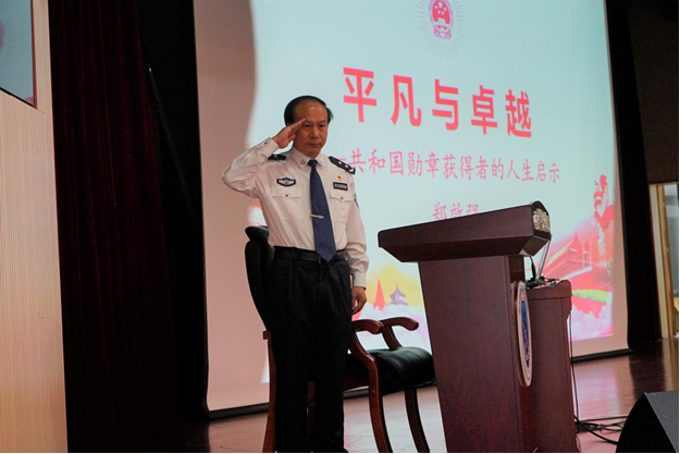 郑副院长围绕“以国之名礼赞英雄”“平凡而卓越的功勋人生”“总书记赞美的三种品格”“共和国勋章获得者的人生启示”四个方面,向同学们介绍了8位共和国勋章获得者厥功至伟的事迹,以及他们身上所蕴含的伟大品格和人生启示。他强调,不能忘记那些为国尽忠、矢志不移的先辈,号召同学们将个人的命运与国家、民族相连,胸怀大志,不畏艰辛,百折不挠,在国家伟大事业中实现自己的人生价值。