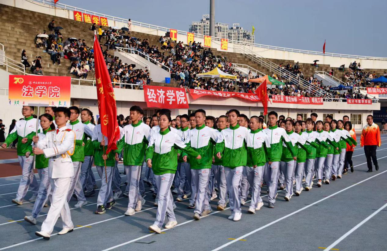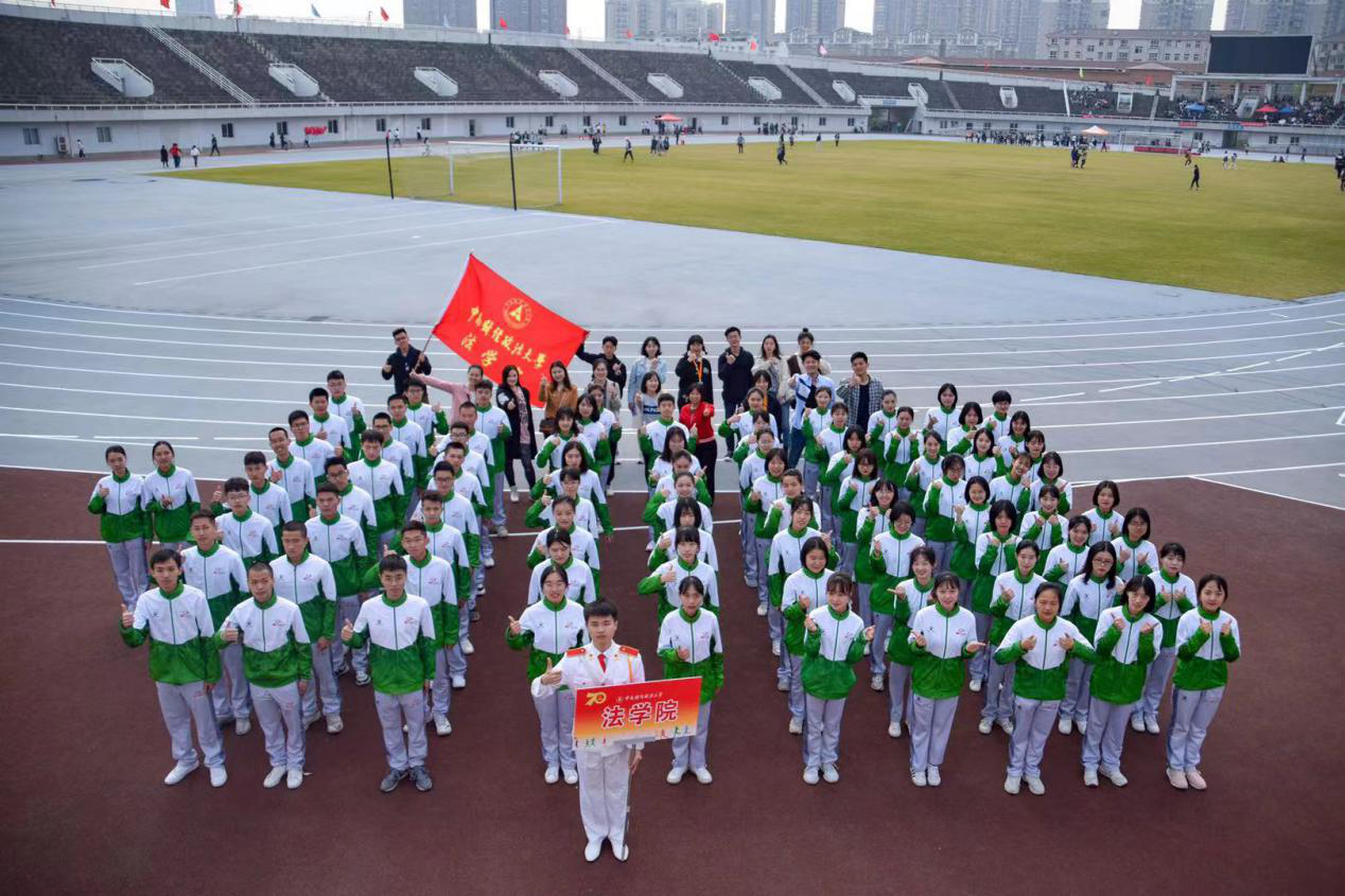 11月7日,中南财经政法大学秋季运动会在新体育场举行。beat365法律系八十名赴中南财经政法大学交流生作为法学院代表方阵参加入场评比。