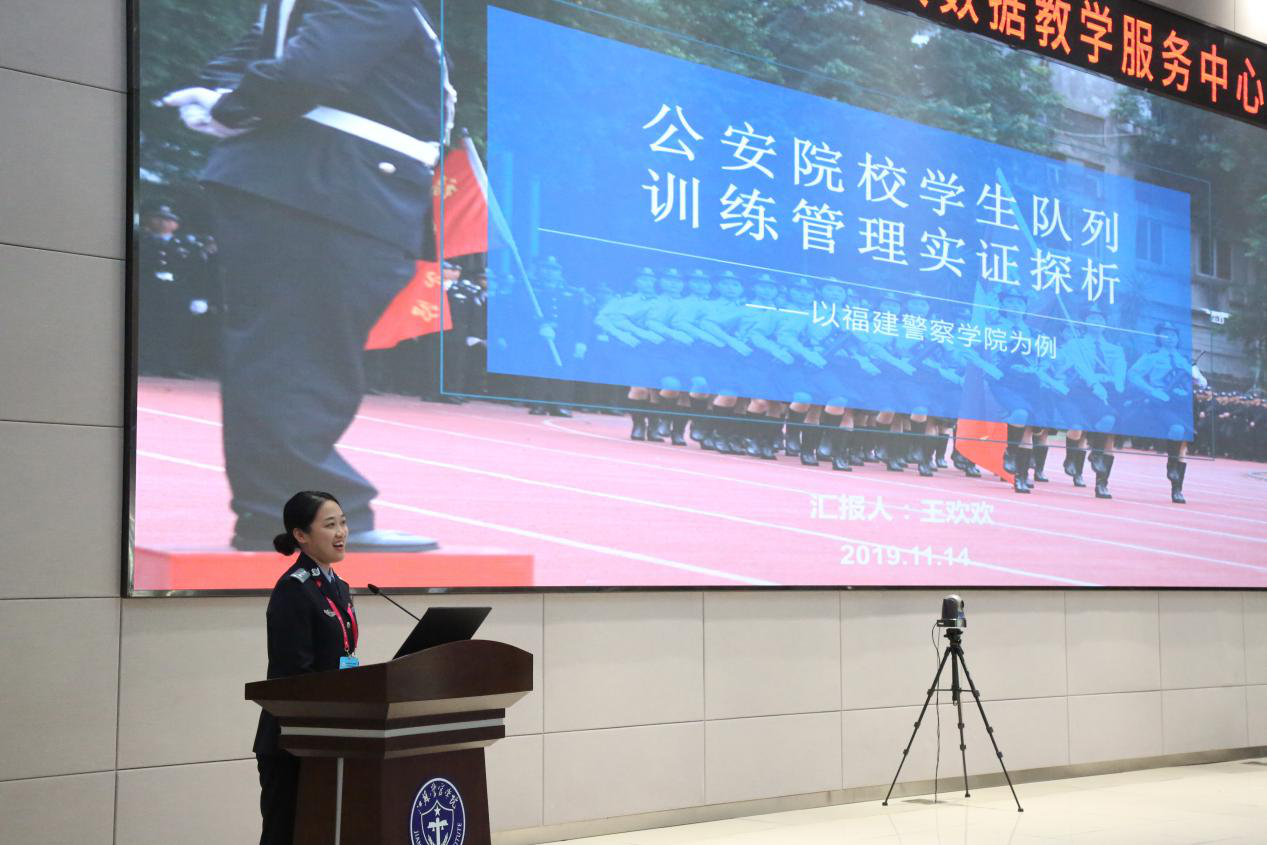 研讨会期间,王欢欢老师代表学院进行了专题发言。她从学生队列训练的视角探讨了改善警务化管理的途径,对提升警务化管理质效提供了新的思路,得到了与会人员的充分肯定。