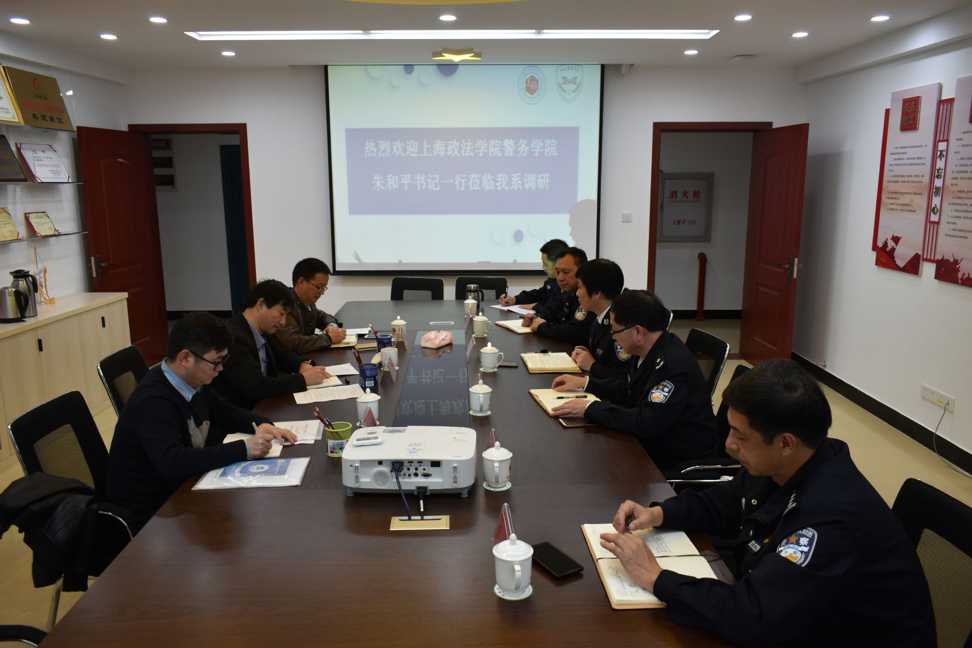 11月22日至23日,上海政法学院警务学院党总支书记朱和平、副书记储德峰、专职辅导员王罗超一行3人到beat365就警务化管理进行交流,并看望在刑执系交流学习的上海政法学院学生。学院副院长杨建树高度评价beat365和上海政法学院的合作交流,并对推进两院间合作提出新的希望。