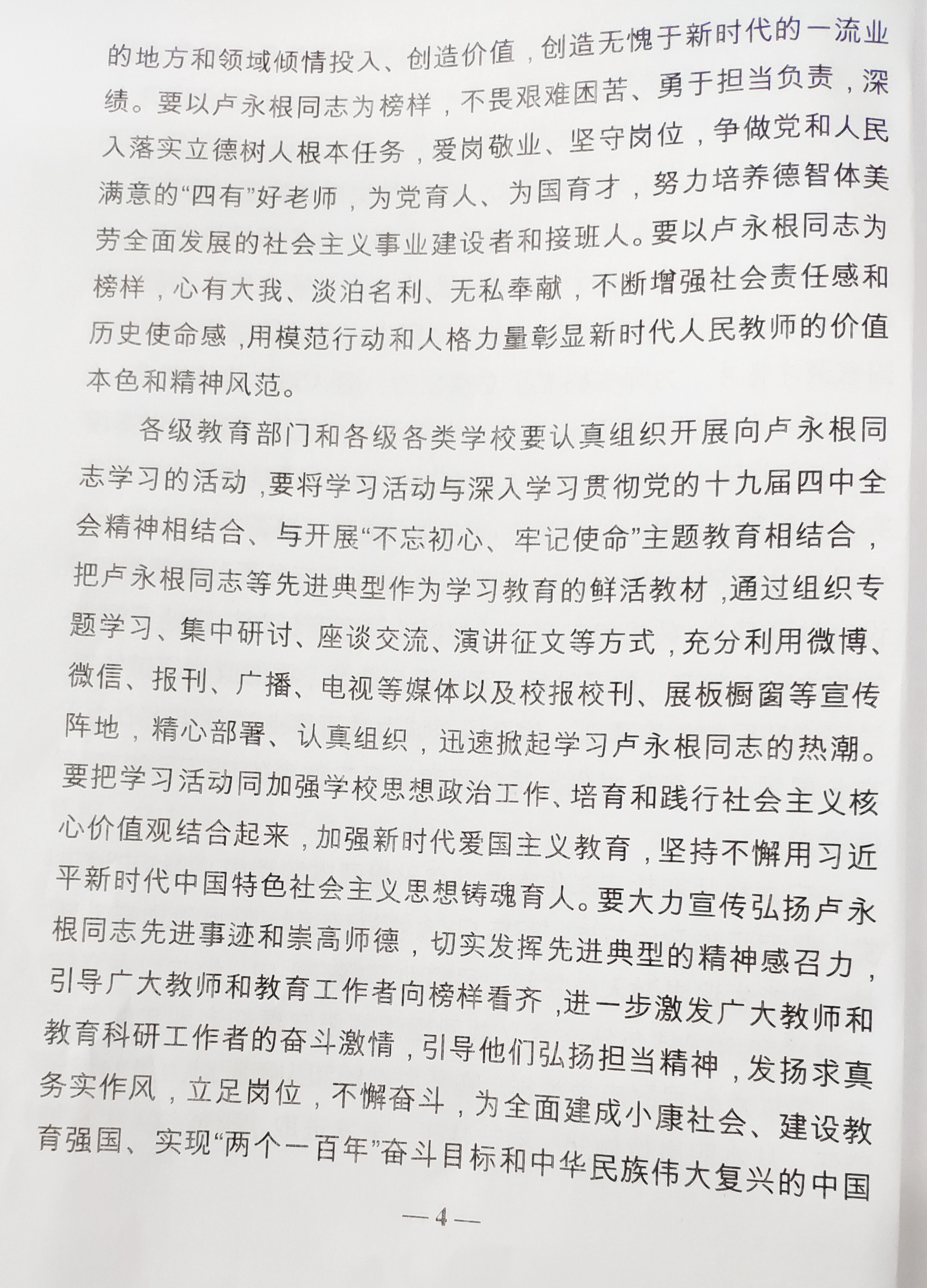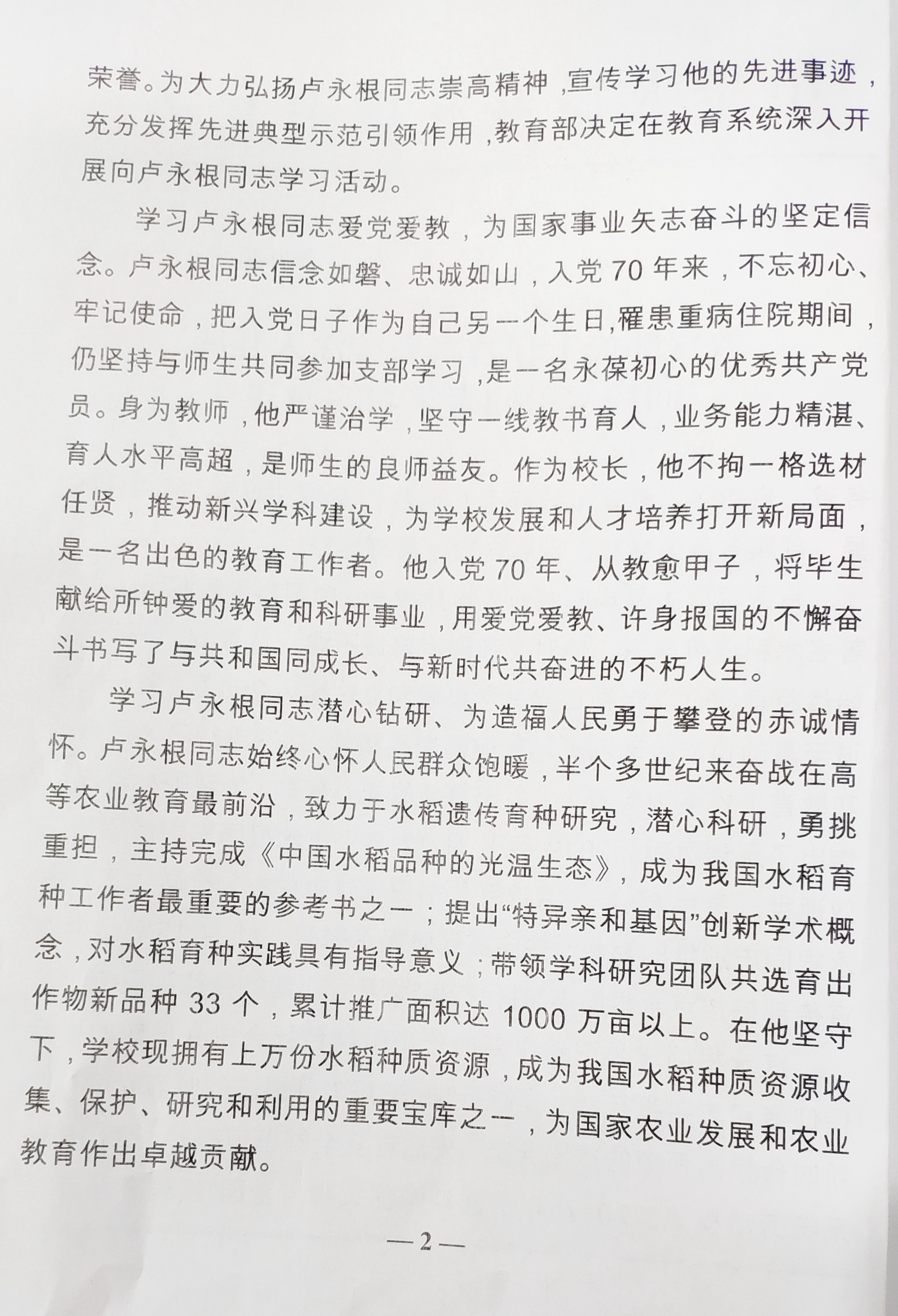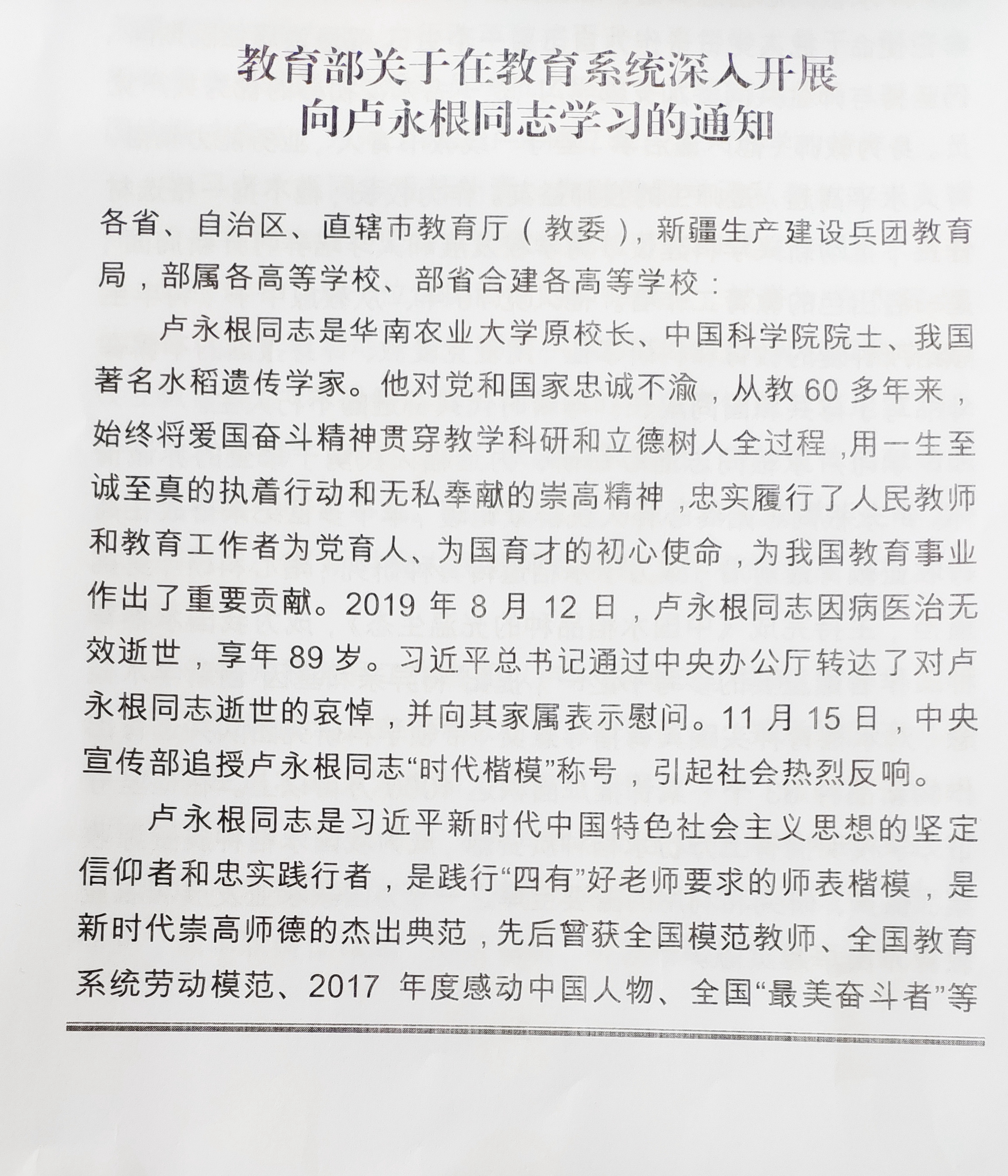 教育部关于在教育系统深入开展向卢永根同志学习的通知