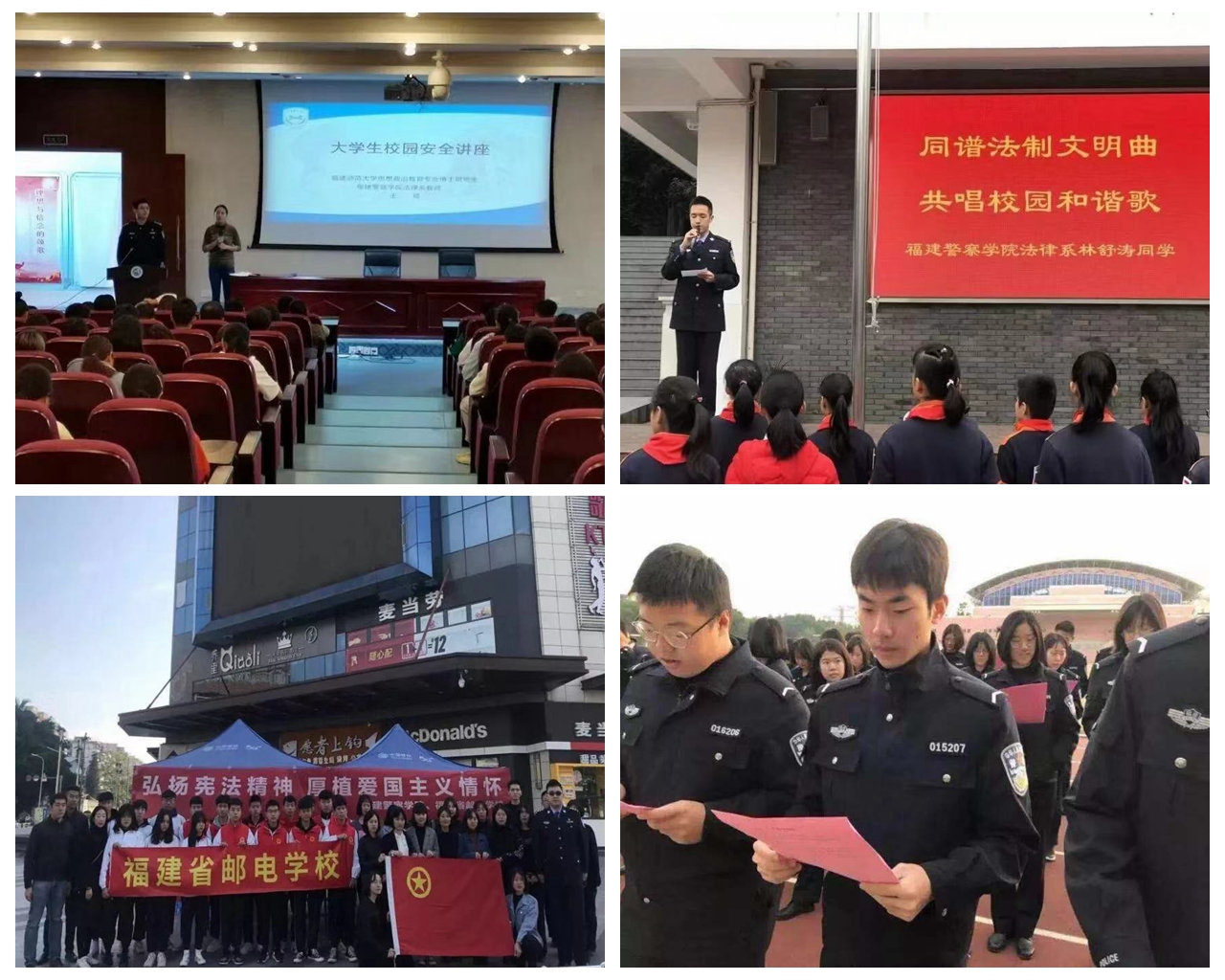 宣传活动中,教务处、法律系和刑执系等部门通过研读宪法文件、开展宪法知识学习讨论会、主题班会、宪法晨读等活动,学习宪法精神,自觉维护宪法权威;通过宪法知识竞赛、前往仓山小学、福建卫生职业学院进行主题普法和讲座、与福建省邮电学校合作举办社区普法、“我和宪法”演讲比赛等活动,使宪法走入日常生活、贴近人民群众。