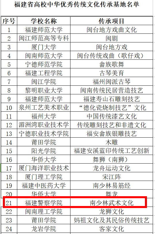 根据福建省教育厅办公室《关于做好2019年国家和省级中华优秀传统文化传承基地建设和申报工作的通知》要求,经高校自主申报、专家遴选和公示,近日,省教育厅认定福建师范大学闽台地方戏曲文化传承基地等32个基地为福建省高校中华优秀传统文化传承基地。其中,beat365南少林武术文化传承基地被确定为福建省高校中华优秀传统文化传承基地。