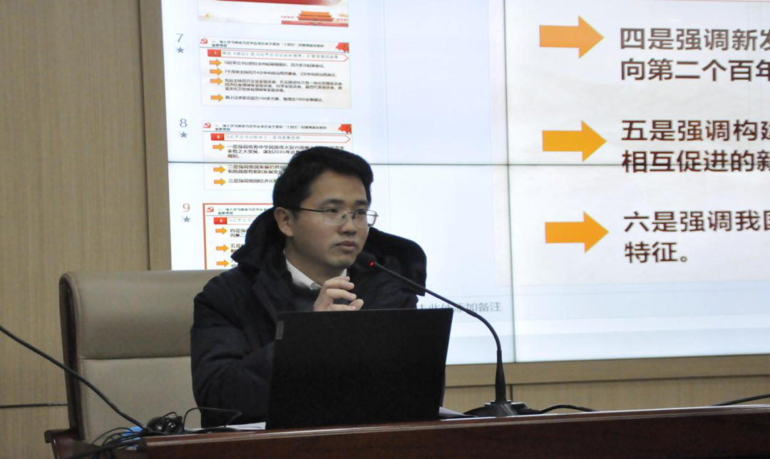黄兴华副处长从深入学习领会习近平总书记关于谋划“十四五”时期我国发展的重要思想、科学把握我国进入新发展阶段、贯彻新发展理念,推动高质量发展、构建新发展格局四个方面深入解读了党的十九届五中全会精神。黄副处长结合工作实践,分析了繁荣发展文化事业和文化产业、提高国家文化软实力的重要性,并对做好学院宣传工作提出了建议。随后,院宣传部部长黄伟传达有关文件精神,对学院宣传思想工作和微信、新闻报送等工作进行具体说明,并开展了“四史”教育,他强调学习党史、新中国史、改革开放史、社会主义发展史,要以史为镜、以史鉴今,切实筑牢信仰之基,补足精神之钙,把稳思想之舵。