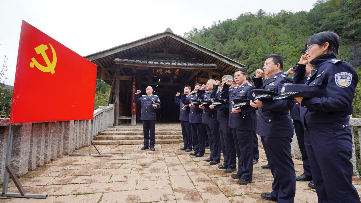 在寿宁县下党乡,全体党员教师重走“党群连心路”,参观了“滴水穿石”公园、主题教育馆、下党村旧址和下党派出所等,探寻习近平总书记披荆斩棘、跋山涉水的足迹,重温了习总书记为下党乡亲们的重要回信精神,对“滴水穿石、弱鸟先飞”的闽东精神有了更深刻的领悟。在下党派出所,我系教官团队的党员与宁德市公安局教育训练处、寿宁县公安局的相关领导就警务实战训练、教官制度建设、教学训练法等问题展开深入交流和探讨。