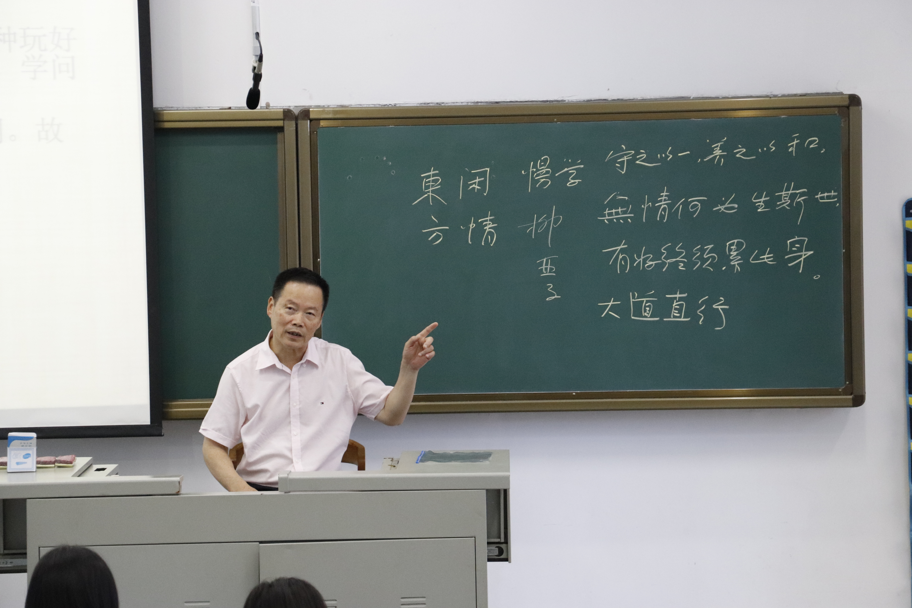 朱教授将自己在书法艺术方面的学习教育经验和 “经典”、“功夫”、“读书”、“原创”结合起来,分析了学习书法所需的四个“崇尚”。讲座深入浅出、幽默风趣、引人入胜,给到场师生带来了一场书法、文学艺术的盛宴和美的享受。