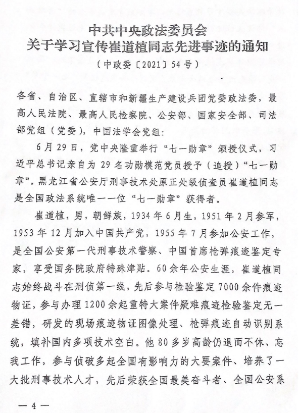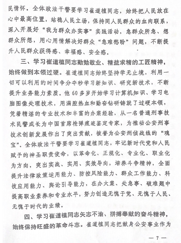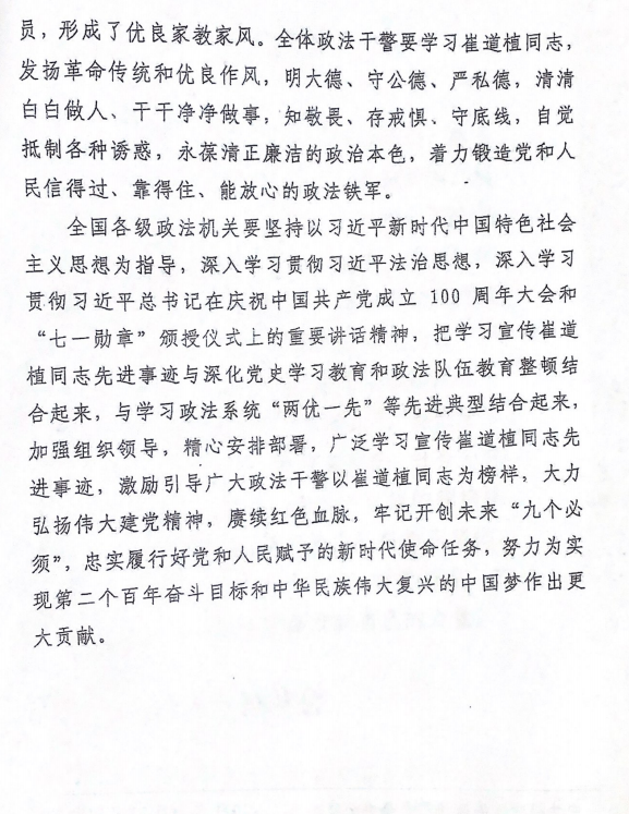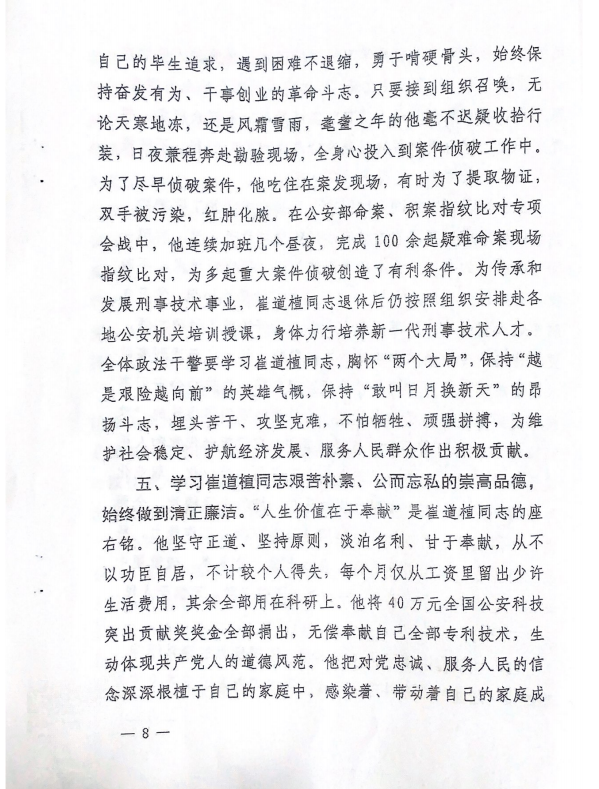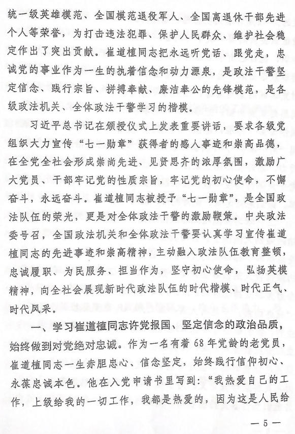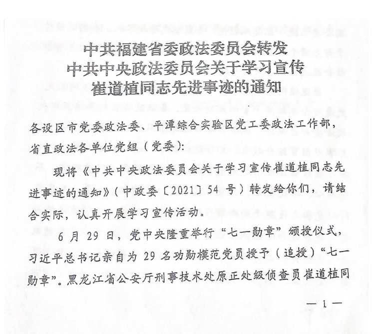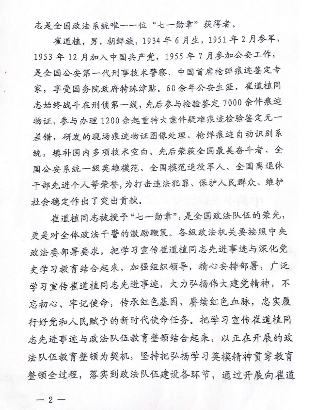 关于学习宣传崔道植同志先进事迹的通知