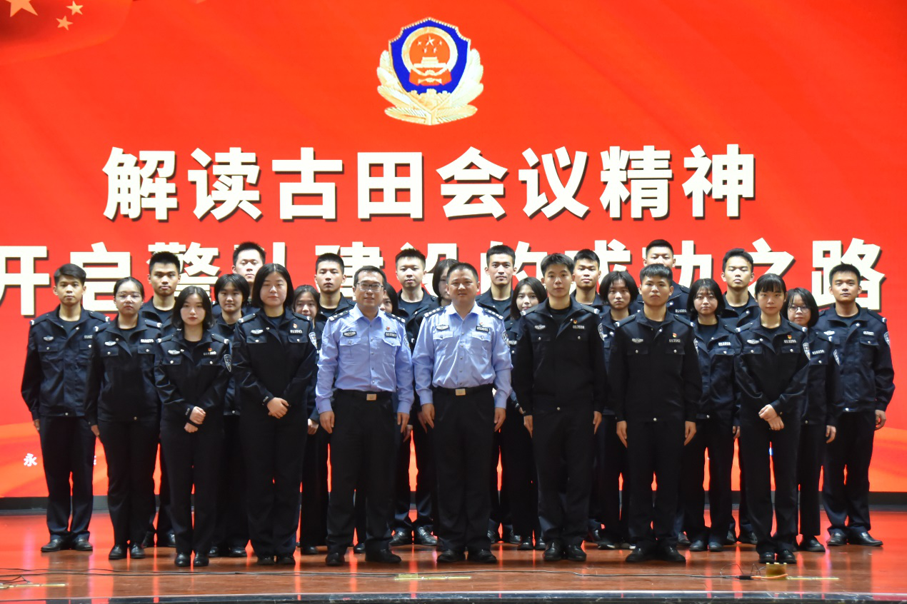 讲座上,李局长首先介绍了古田的历史以及古田会议精神的内涵,强调了古田是我党确立思想建党、政治建军原则的地方,人民军队从古田走出了一条中国革命的成功之路。接着,李局长从革命先辈的光荣事迹入手,强调新时代学警要牢记先辈的付出,不忘初心。最后,李局长结合自身在古田派出所担任所长的经历和红色革命历史,介绍了如何把红色文化,特别是古田会议精神创造性地运用到警队建设之中,锻造出一支“永远听党话、永远跟党走、永远为人民”的红军式警队。