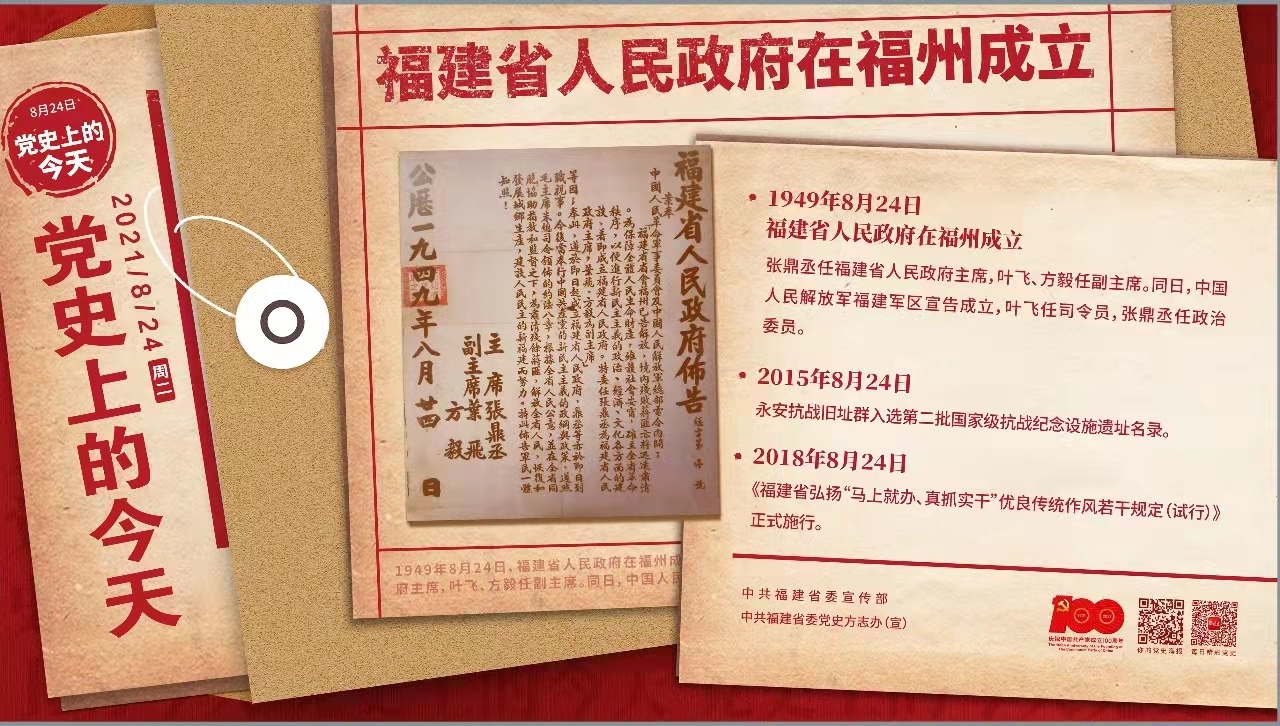 张鼎丞任福建省人民政府主席,叶飞、方毅任副主席。同日,中国人民解放军福建军区宣告成立,叶飞任司令员,张鼎丞任政治委员。
