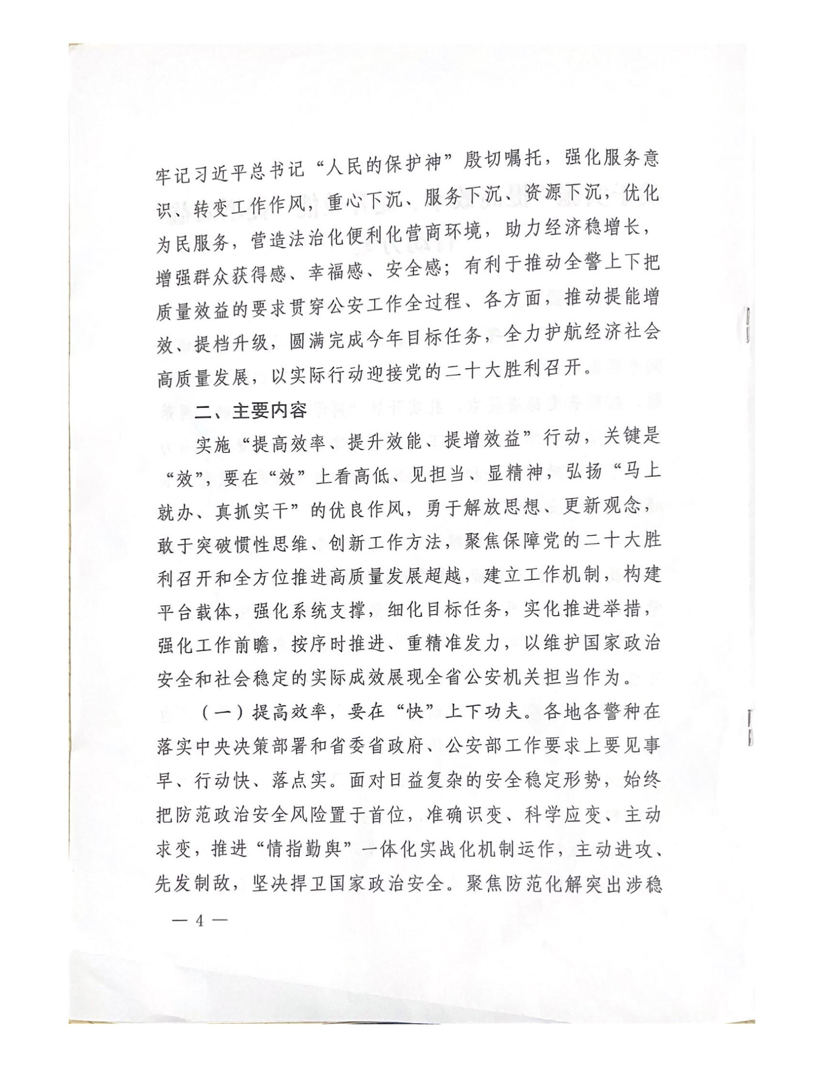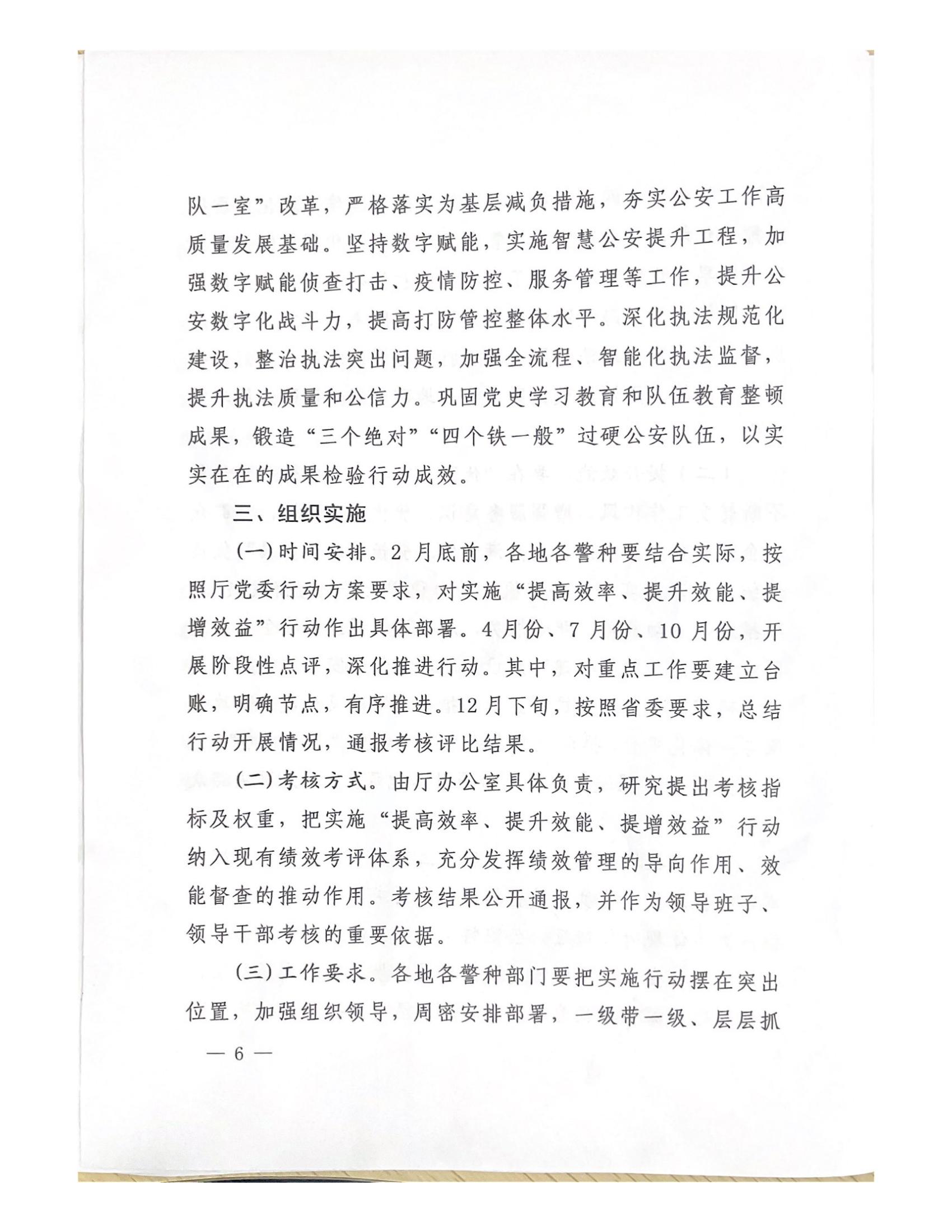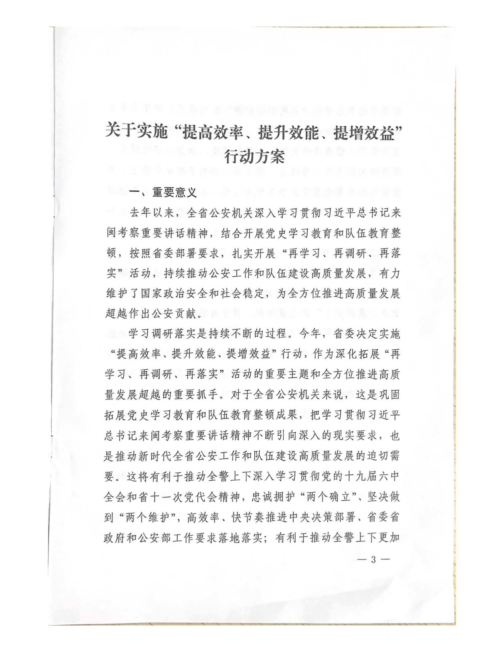 二、省公安厅党委《关于实施“提高效率、提升效能、提增效益”行动方案》有关要求(具体文件详见附件)