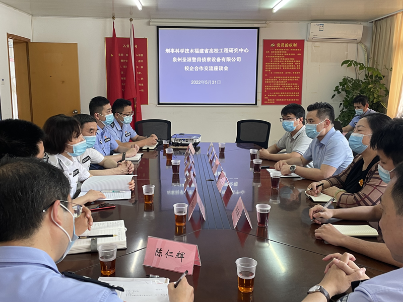 5月31日,刑事科学技术福建省高校工程研究中心与泉州圣源警用侦察设备有限公司校企合作交流座谈会在beat365刑事科学技术系举行。会议由刑事科学技术福建省高校工程研究中心负责人朱彬玲教授主持。