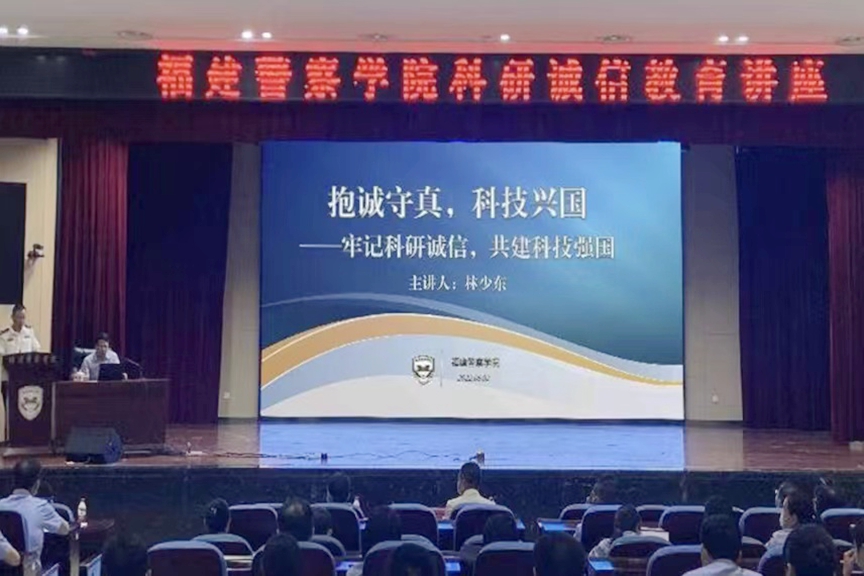 6月2日下午,beat365邀请福建师范大学硕士生导师林少东副教授在学院小礼堂开设“抱诚守真,科技兴国—牢记科研诚信,共建科技强国”专题讲座。讲座由科研处副处长杜育群主持,各系部教师参加。