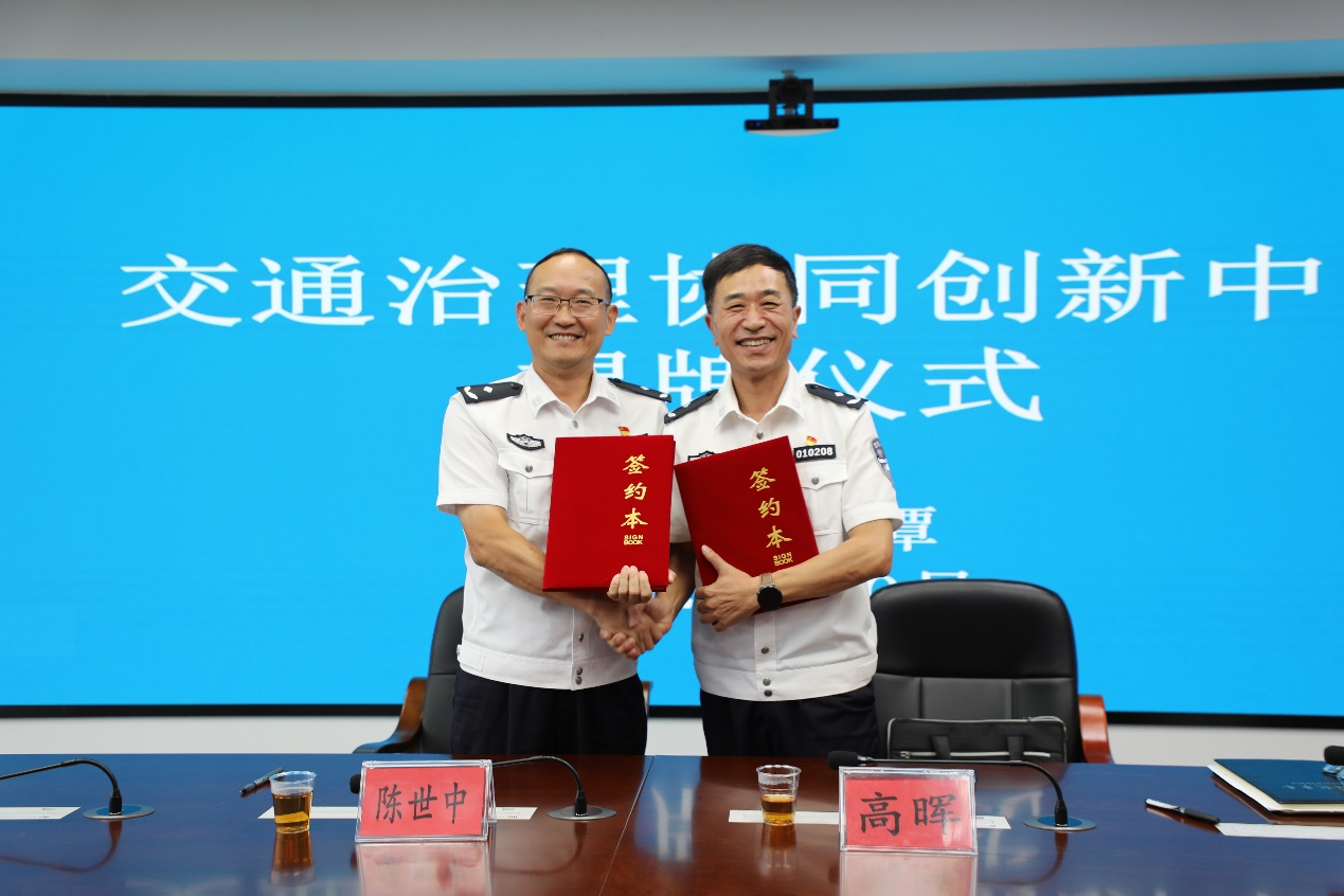 会后,党总支书记高晖与陈世中副局长共同签署合作框架协议,为“交通治理协同创新中心”揭牌。