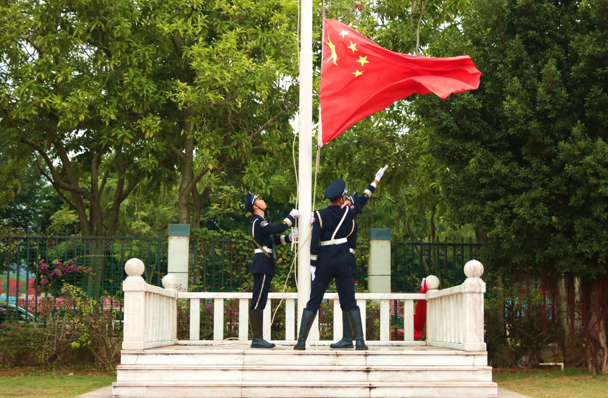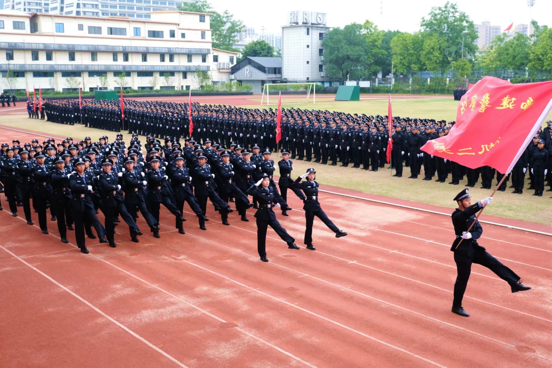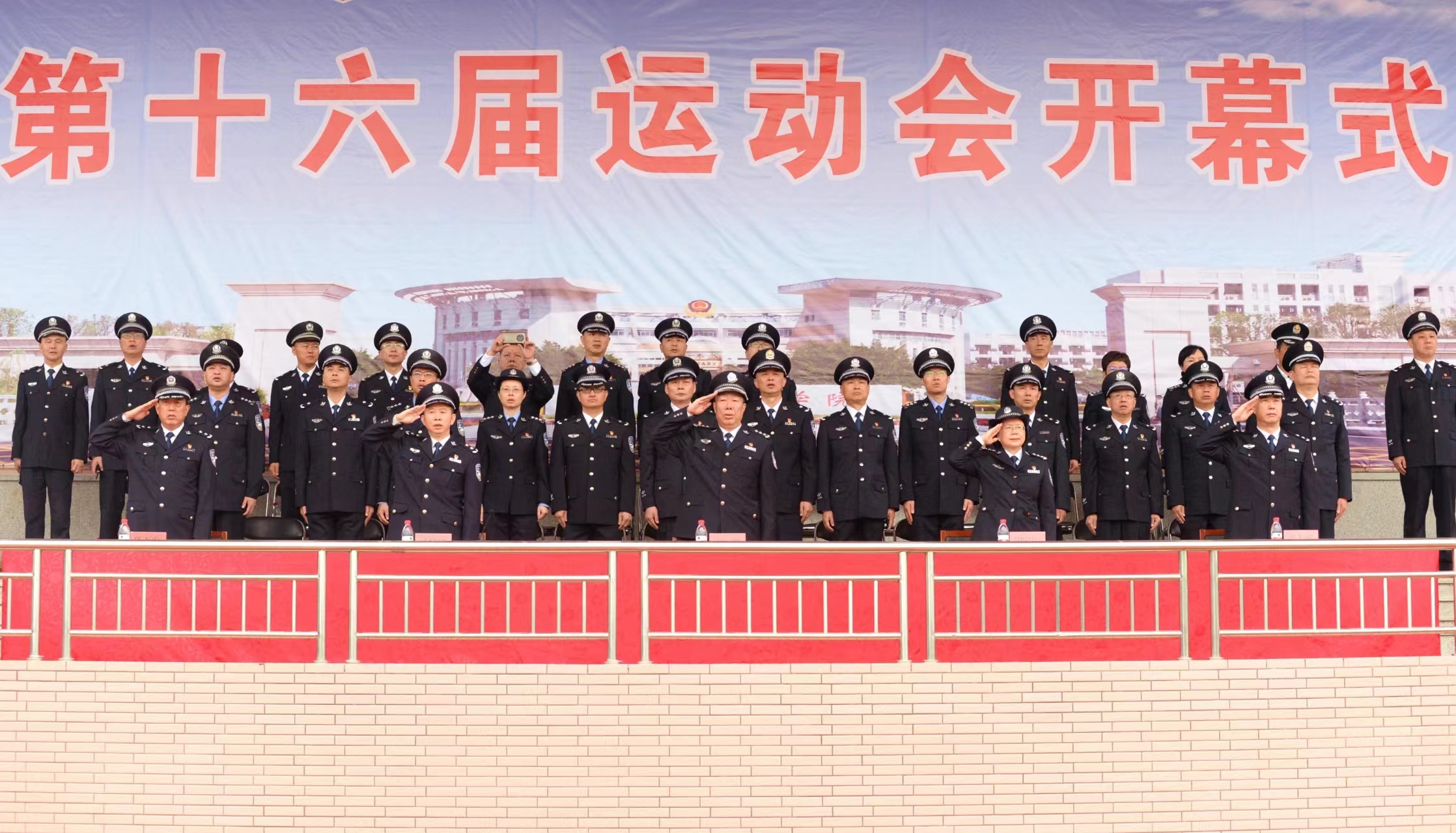 国旗方队、警旗方队、校旗方队及运动员代表方队迈着矫健的步伐、喊着铿锵有力的口号,精神抖擞、意气风发地进入运动场,依次接受主席台领导的检阅。随着《义勇军进行曲》的响起,旗手振臂一挥,鲜艳的五星红旗徐徐升起。现场庄严肃穆,全体师生齐唱国歌,心中热血沸腾,激情澎湃。运动员代表、裁判员代表庄严宣誓,学院副院长杨建树宣布分列式汇演成绩,院党委书记游晔宣布运动会开幕。