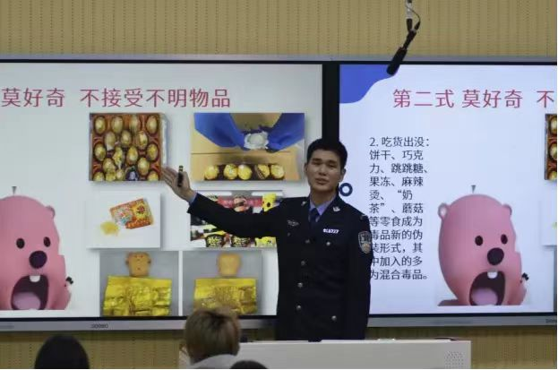 活动中,宣讲员以图片、视频、舞台剧的方式向现场师生科普毒品的种类、危害以及如何辩识伪装毒品;通过因吸毒而感染艾滋病的具体案例,普及了艾滋病的相关知识,倡导大家树立正确的生活观,提高禁毒防艾意识。