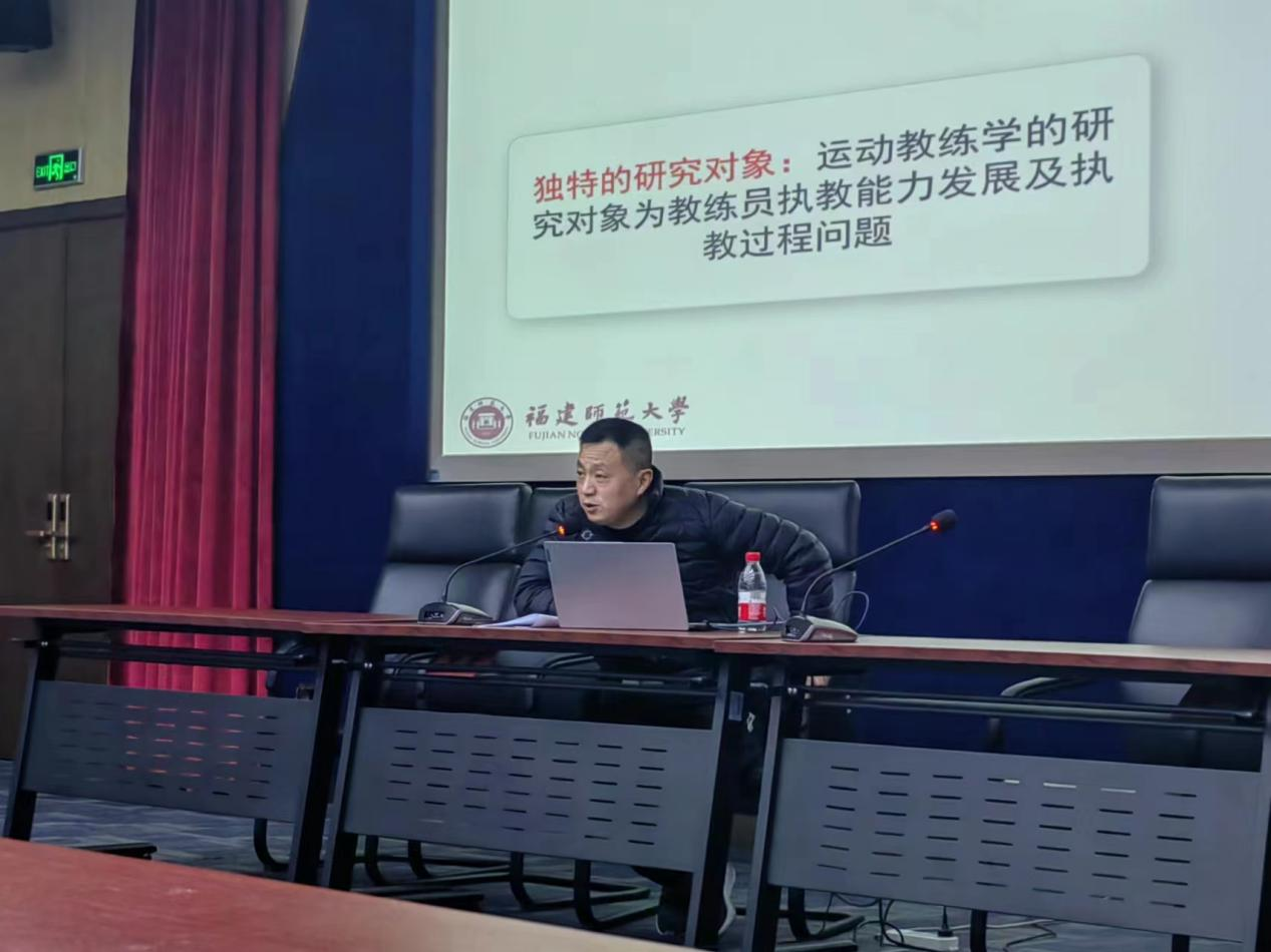 近日,福建师范大学体育科学学院副院长徐建华教授应邀来院作《运动教练学:一门亟待构建的新学科》讲座。