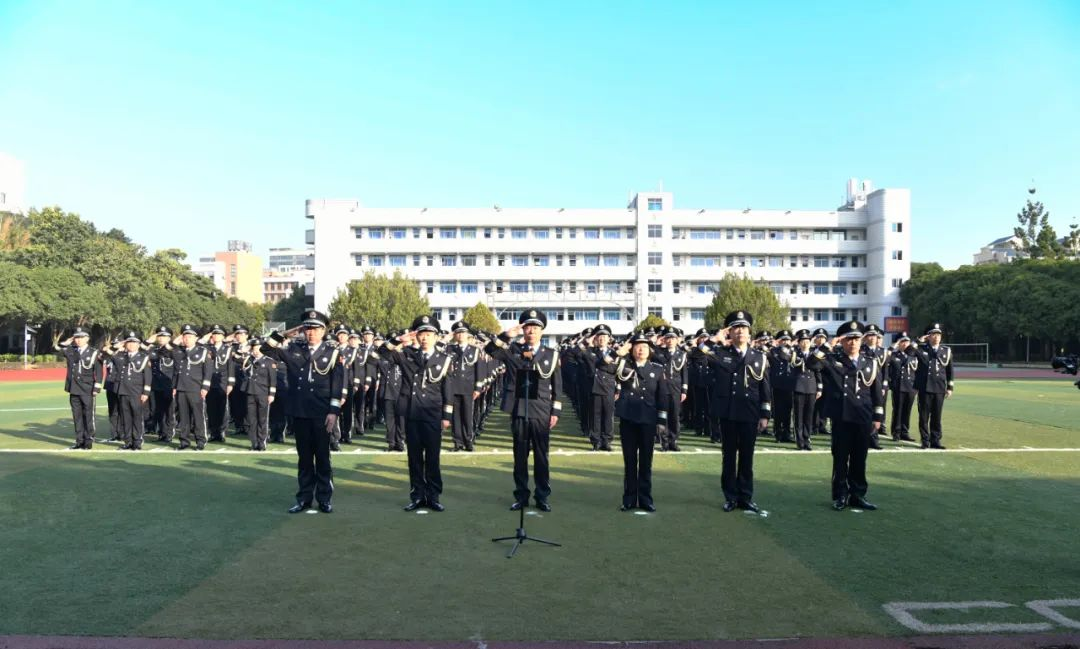 隆重举行2024年中国人民警察节升警旗仪式,全体师生身着警礼服、头戴警礼帽,整齐列队、激情满怀。伴随着嘹亮的中国人民警察警歌,师生们庄严敬礼,坚定的眼神跟随飘扬的警旗徐徐上升。