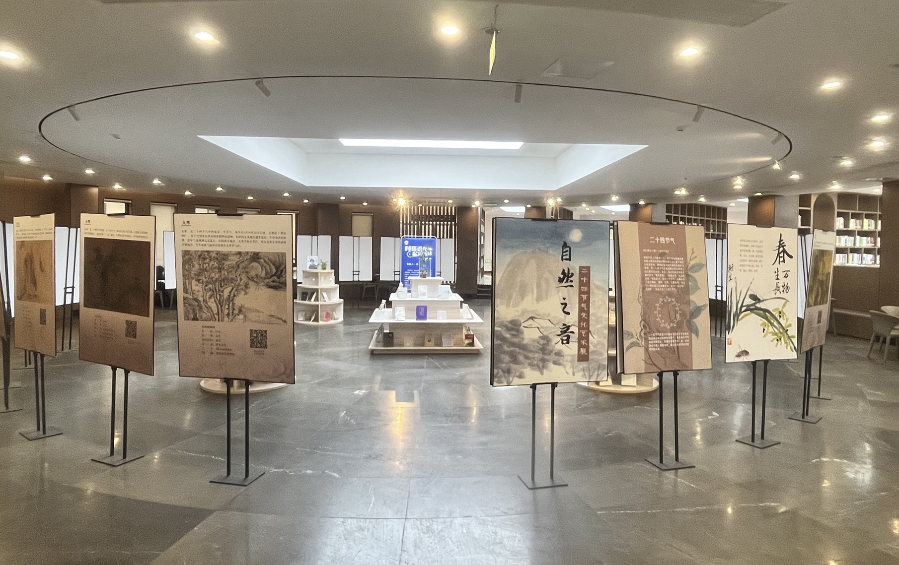 为深入学习贯彻习近平文化思想,图书馆在一楼中庭举办“自然之音——二十四节气文化艺术展”。3月4日下午,图书馆党支部开展“坚定文化自信 弘扬传统文化”主题党日活动,组织支部全体党员观展。