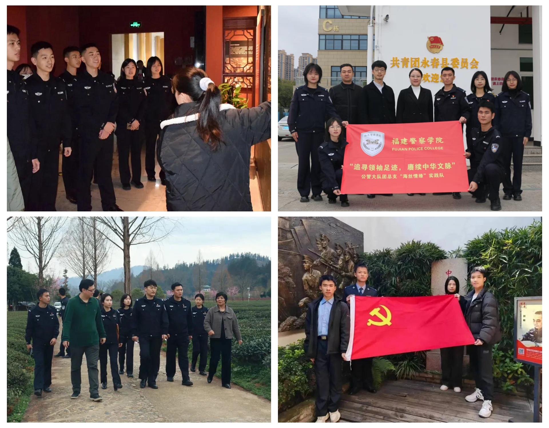 侦查一大队成立乡村调研社会实践小队,参观闽清梅雄村,拜访台创基地与创客聚落,撰写《“秉施‘千万工程’ 推动乡村振兴”——“平安梅雄村”社会实践调研报告》。侦查二大队组织学生开展福州红色文化研习活动,参观林觉民故居、福州辛亥革命纪念馆、新四军驻福州办事处旧址,开展趣革命历史知识竞赛,激发学子学习红色文化的热情。刑技大队组织学生参观福州市“3820”战略工程现场教学点、古田派出所、古田会议纪念馆和三坊七巷等,深入了解历史文化遗产保护情况。治安一大队组织学生参观毛泽东才溪乡调查纪念馆、鼓浪屿民俗文化馆和闽东畲族博物馆,召开座谈会,深入学习了解福建民俗文化。治安二大队组织学生前往泉州市博物馆,体验非物质文化遗产技艺,与非遗传承人、泉州市公安局丰泽分局民警进行座谈交流,学习领会传承弘扬优秀传统文化的重大意义。公管大队前往泉州,参观五里博物馆、海丝侨乡名人文化馆、中国永春白鹤拳史馆、泉州海外交通史博物馆等文化场馆,学习泉州的海洋文化,了解海丝故址深厚的文化底蕴。法律二大队组织学生前往泉州市永春县,调研侨新观光工厂,拍摄守护醋文化的普法情景剧,近距离感受永春老醋的历史底蕴与文化魅力。战术大队组建闽南、闽西、闽中三支实践队,分别参观“海丝三宝”、泉州海外交通历史博物馆、古田会议旧址、中央苏区历史博物馆、福建省历史博物馆等红色教育基地。计算机二大队和马克思主义学院共同组建实践队,前往武夷山市公安局景区派出所、省公安厅森林公安局武夷山国家公园分局、武夷山市森林消防大队等地开展实地调研,开展安全宣传教育活动,普及森林生态资源保护、森林防火、预防网络诈骗等知识。刑执大队组织参观厦门大学革命史展览馆、三坊七巷、苏维埃政府旧址、龙山会议旧址等处,了解中国共产党领导下福建人民进行革命斗争的光辉历程。