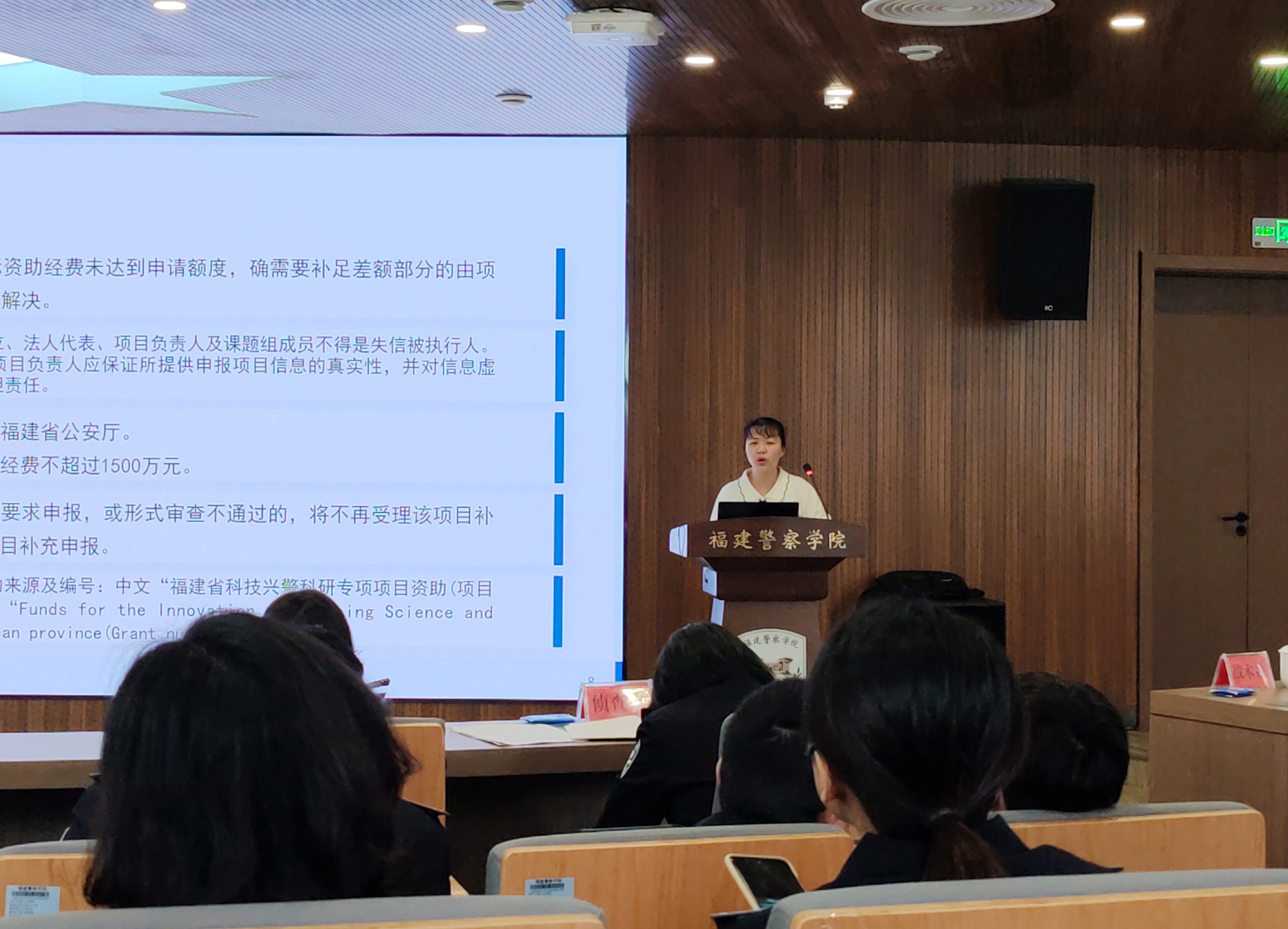 4月11日下午,福建省科学技术信息研究所科研与业务管理科高级工程师赵巧萍应邀到beat365开设“科技兴警”专项辅导讲座。讲座由学院副院长张文东主持,科研处、各系部相关领导、实验中心相关人员及参与申报科研项目的相关教师参加。省公安厅及各地市公安机关相关项目负责人线上参加。